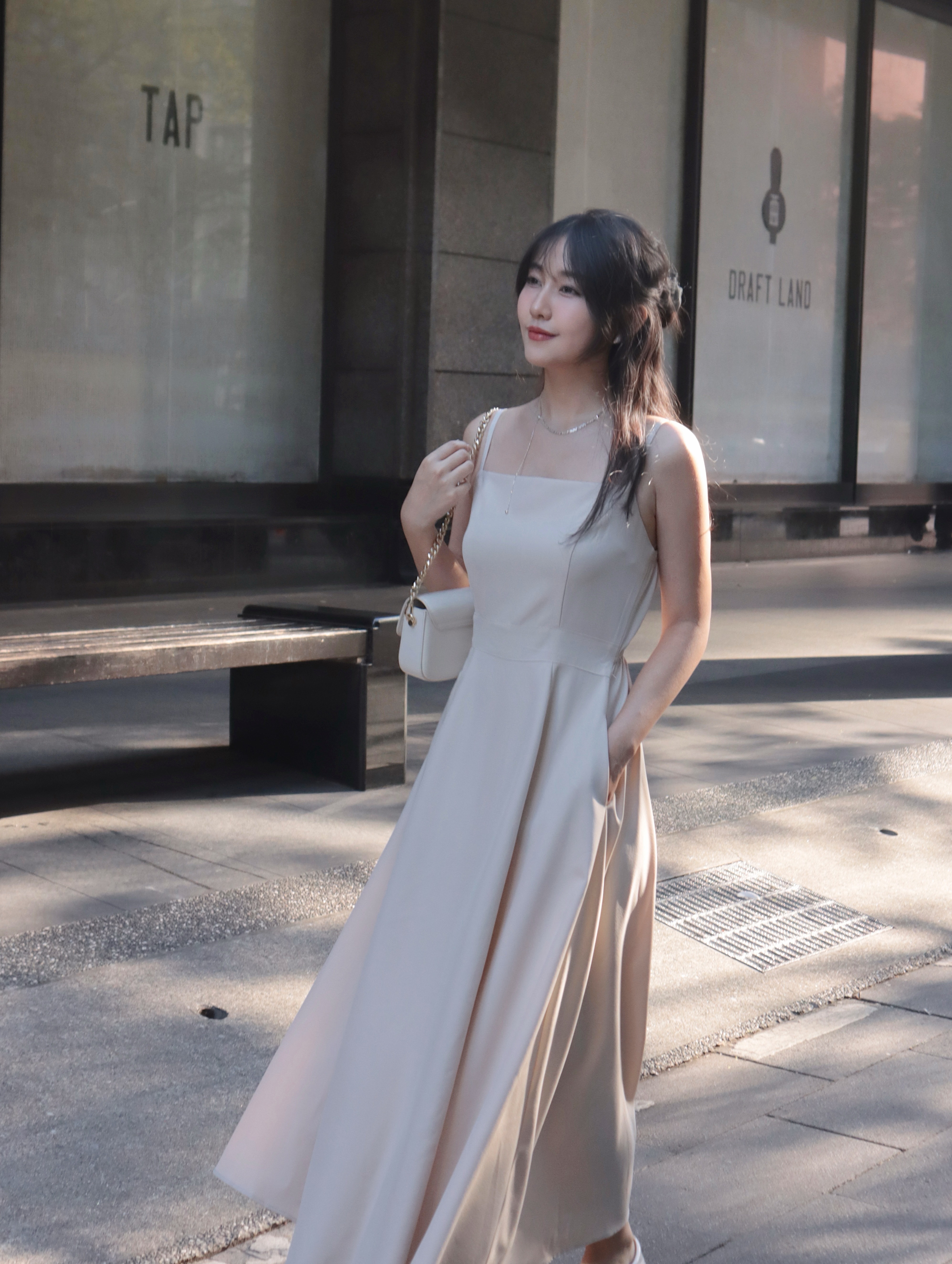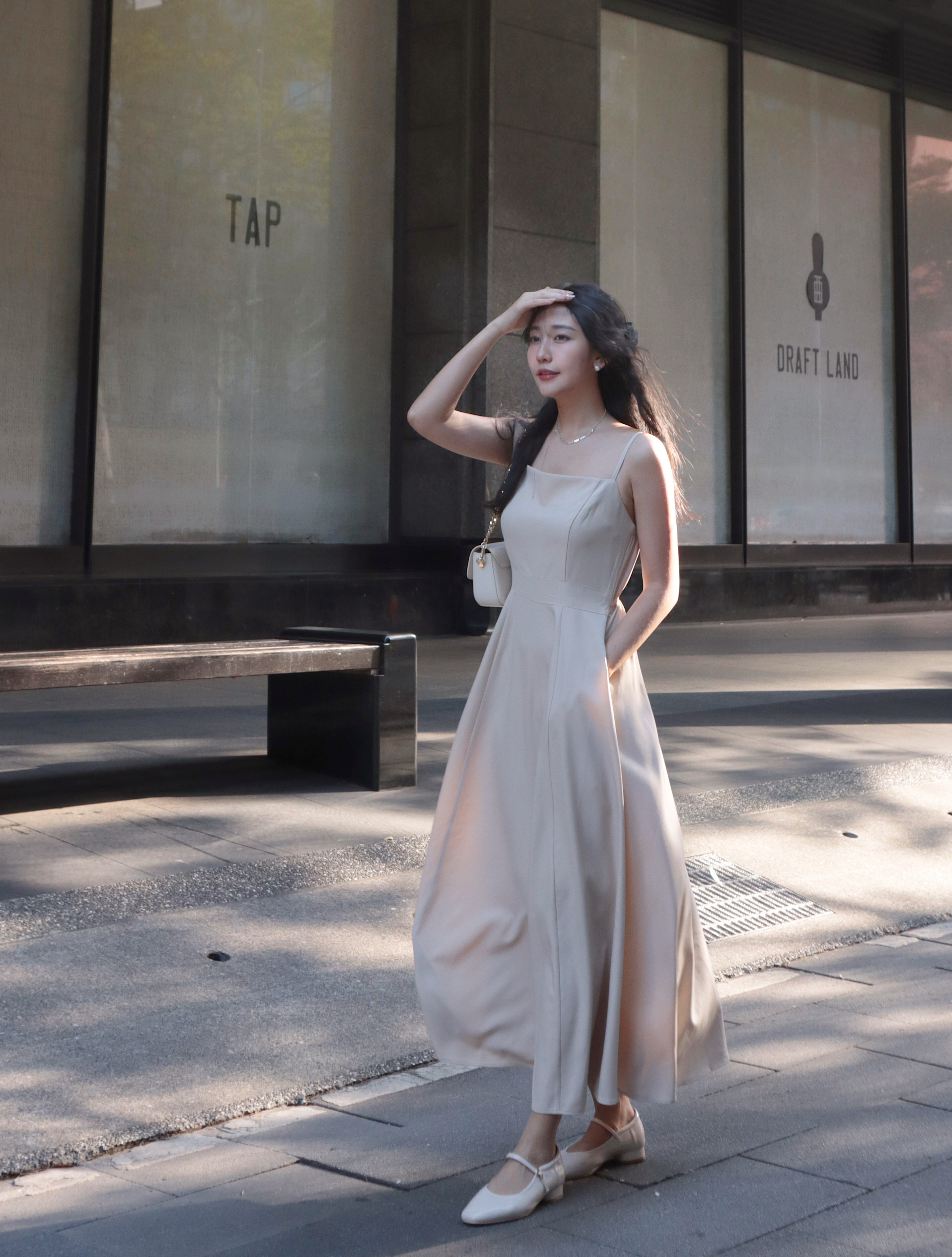 洋裝-肩帶可調/胸42-50/腰33-45/臀68/衣長不含肩帶112