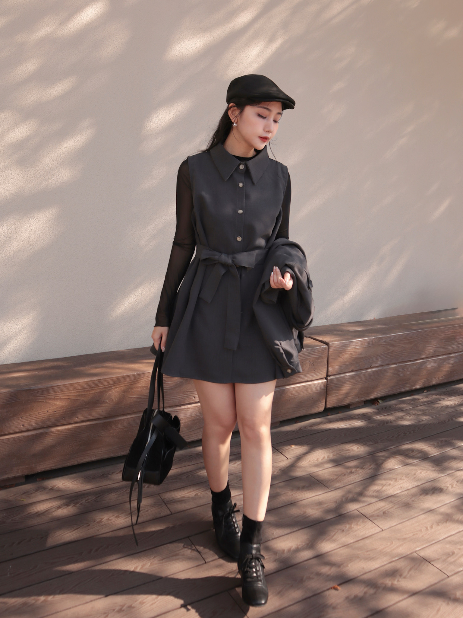 背心短洋裝-胸56/臀約80/全長80/袖口22