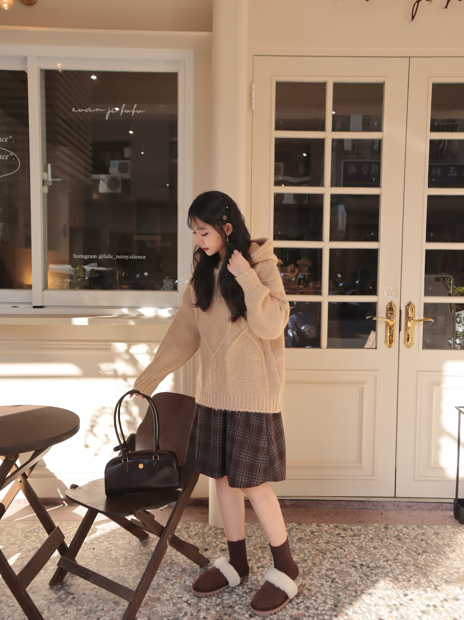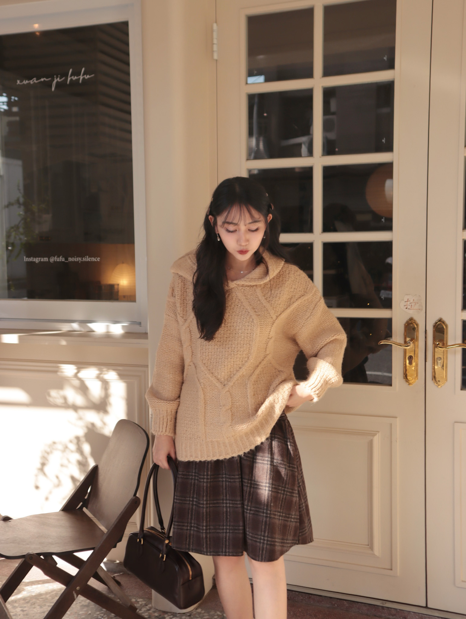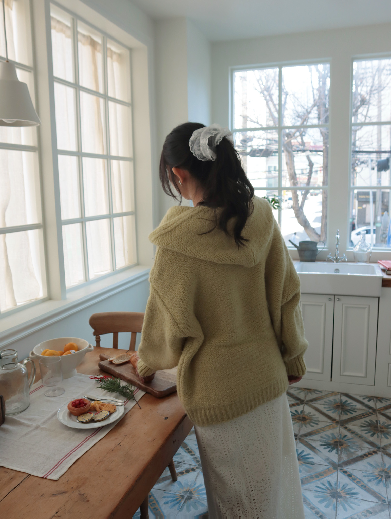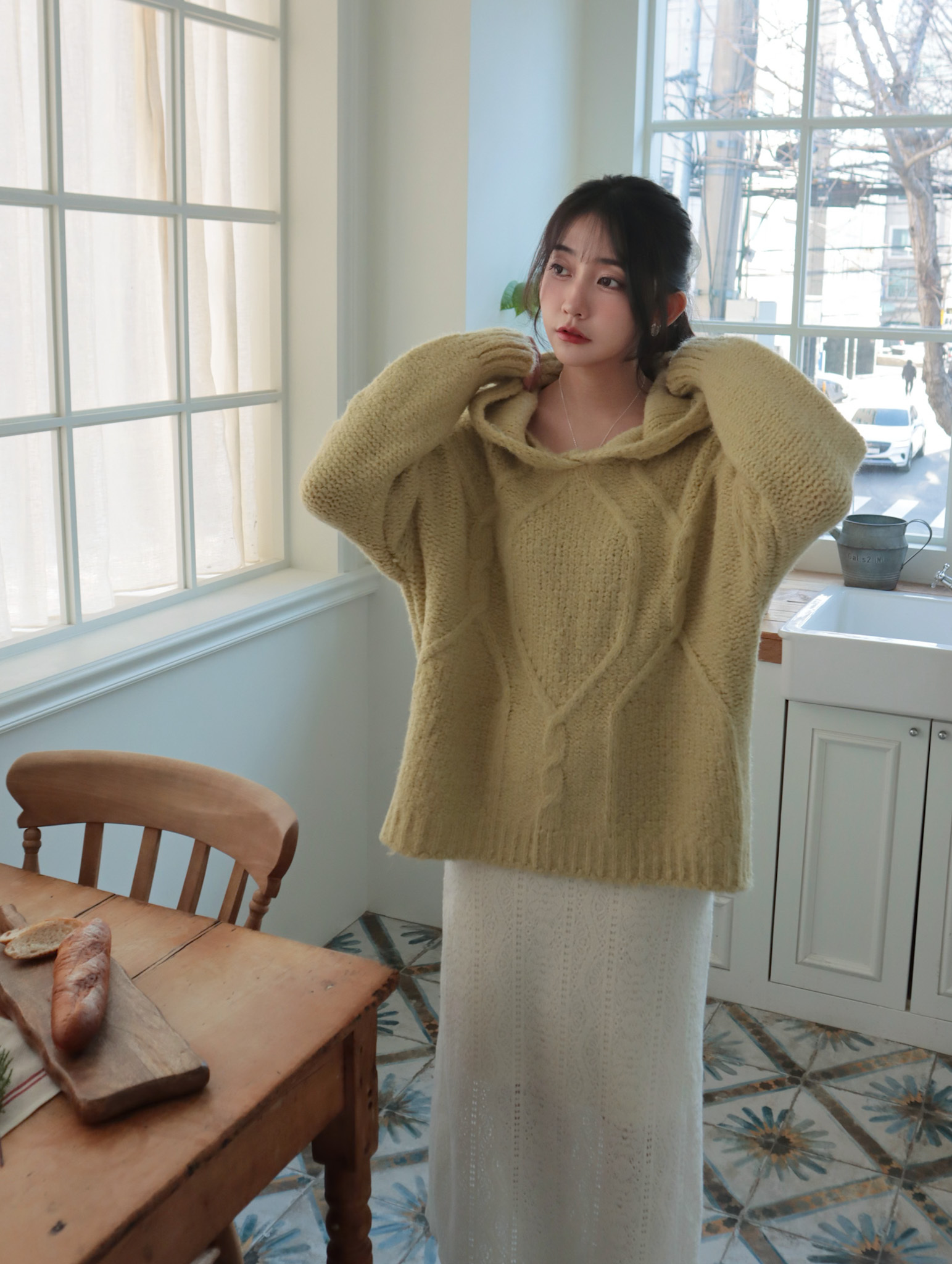 25K106 酪梨奶油 鬆鬆軟軟連帽麻花長板毛衣 (自留款)