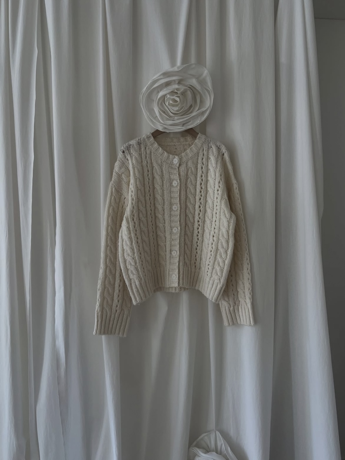 25K113 本期推薦! 美術館的女子 復古鏤空麻花編織排釦毛衣/外套