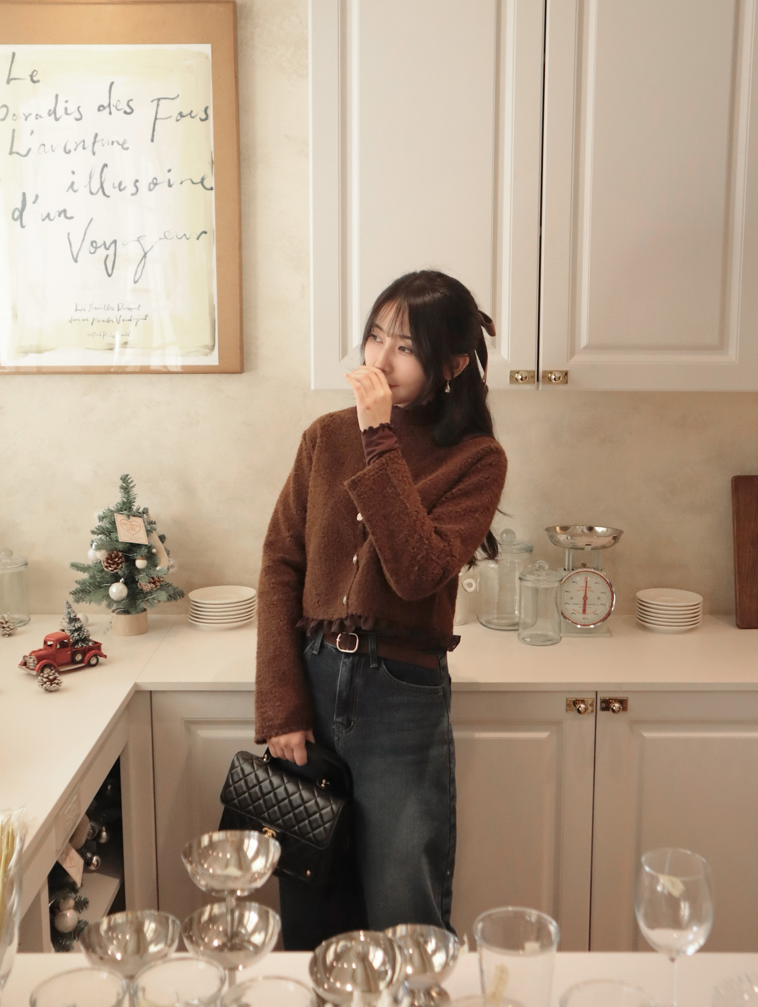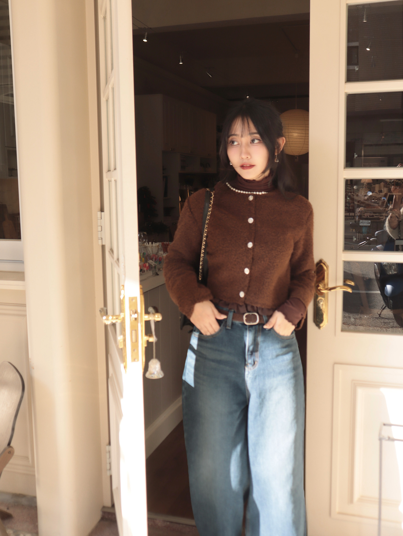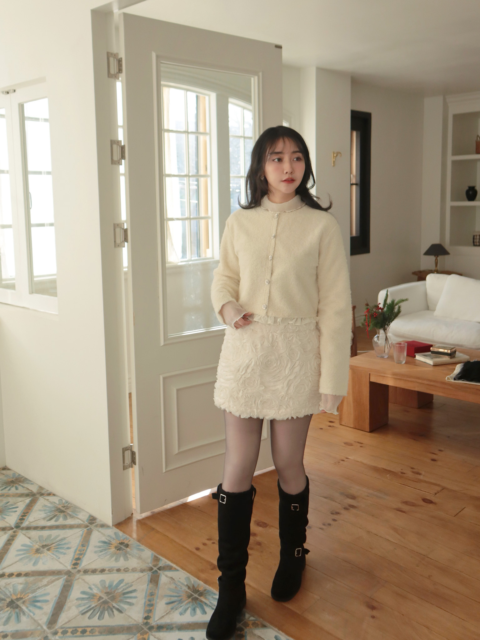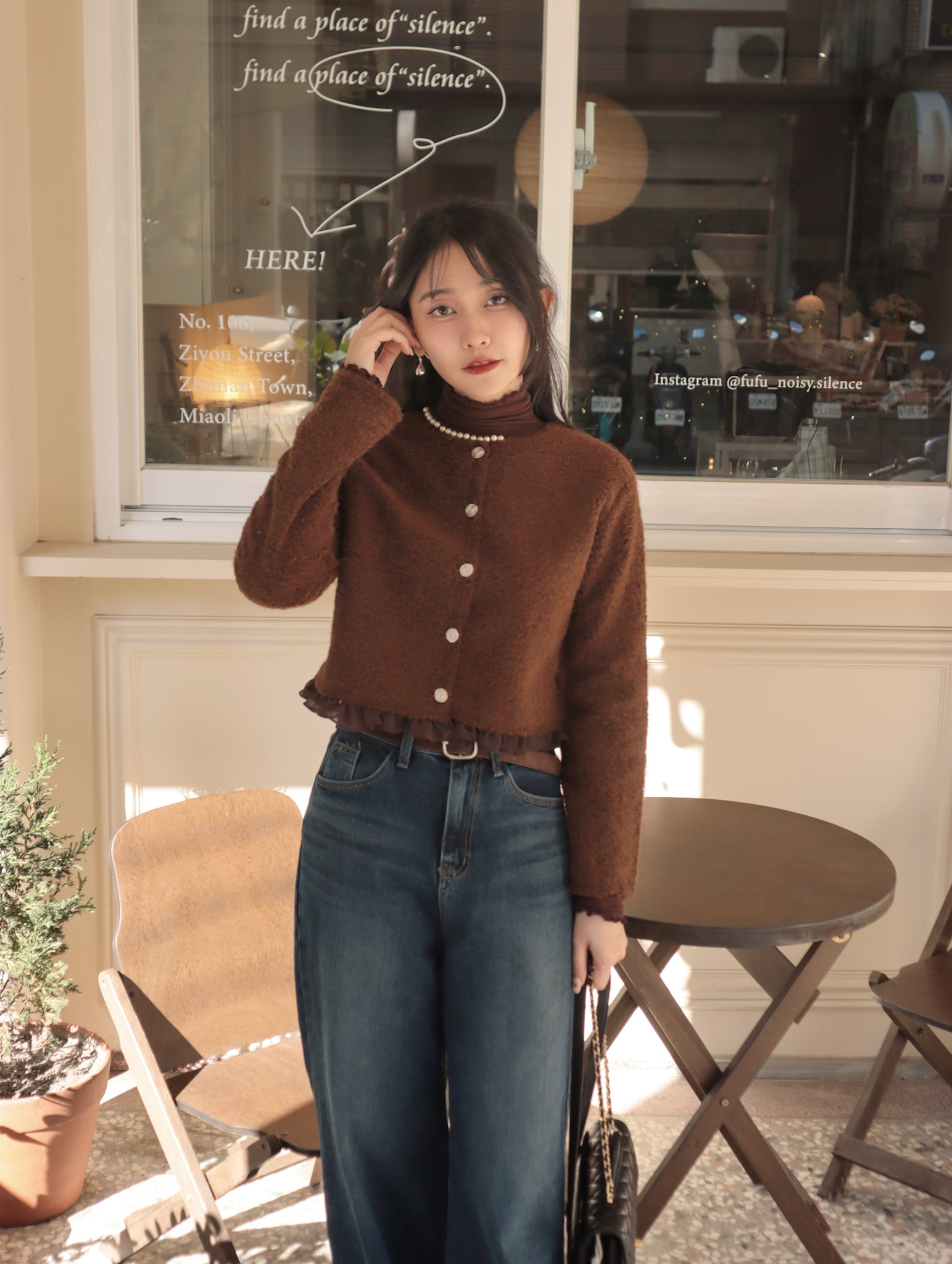 25K116 本期推薦!小香文藝復興 法式玫瑰釦木耳滾邊小外套/毛衣