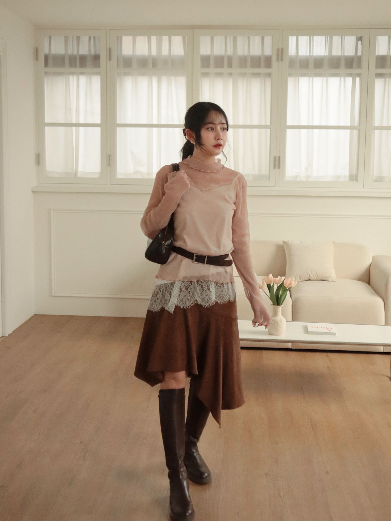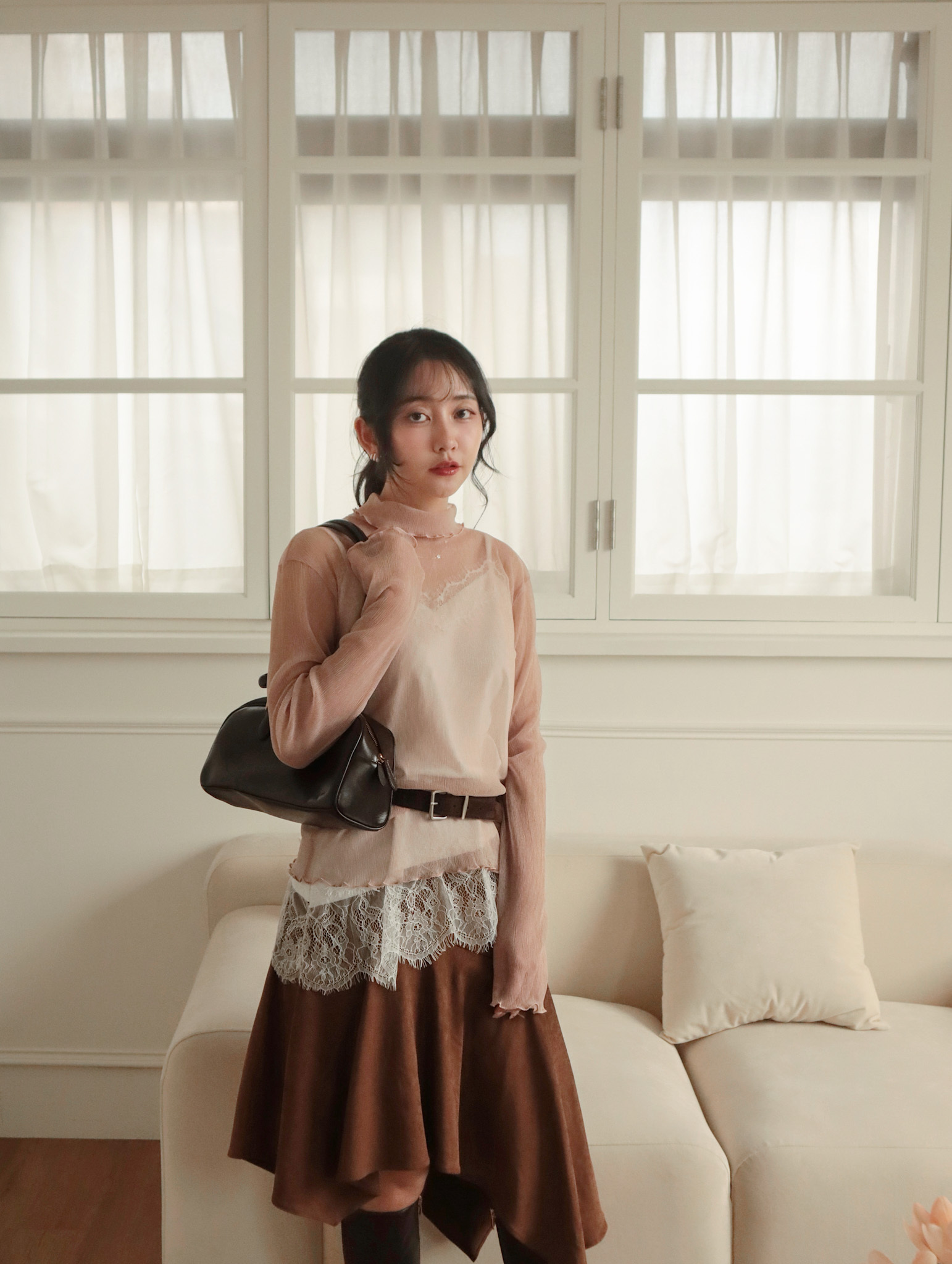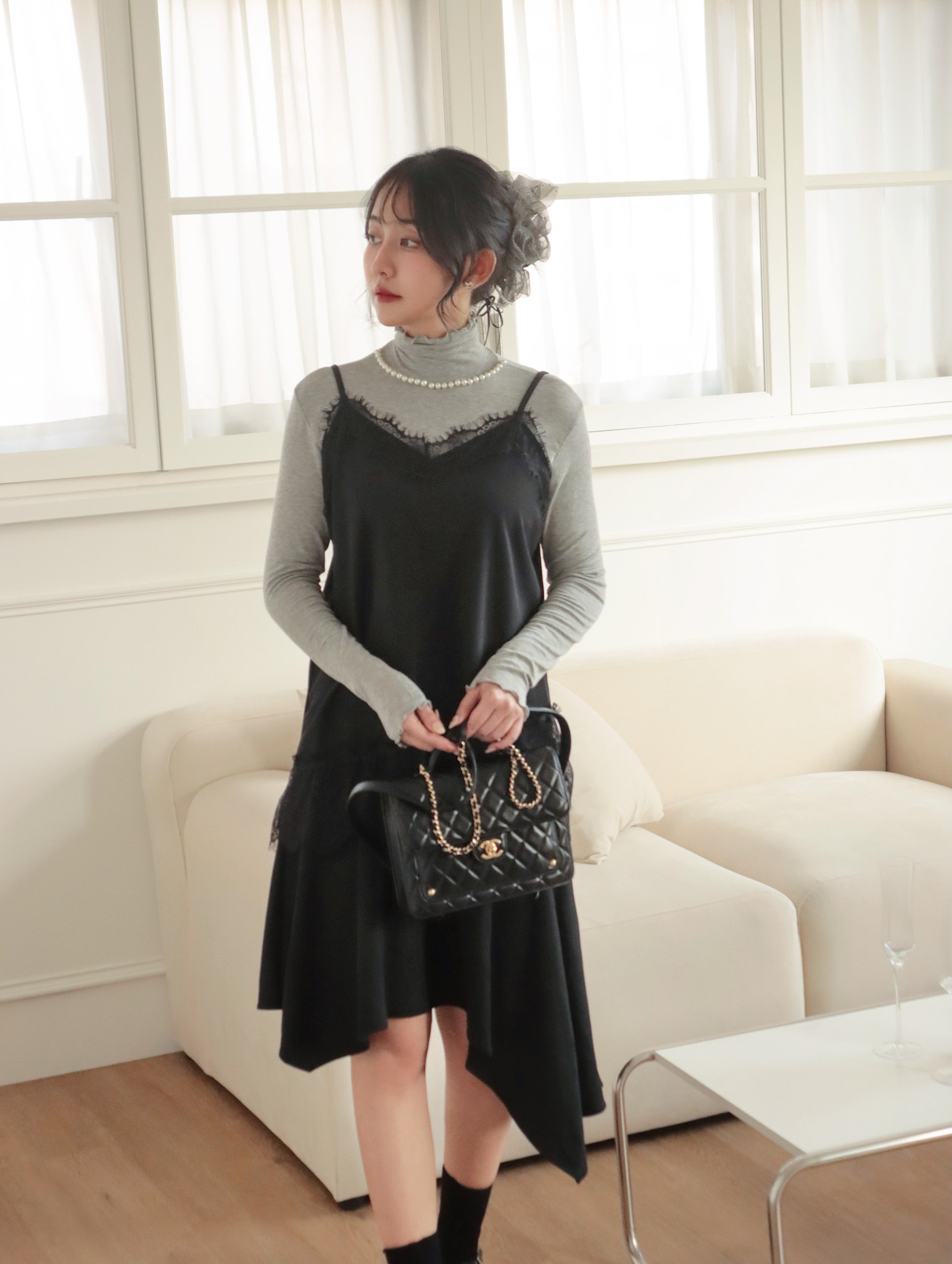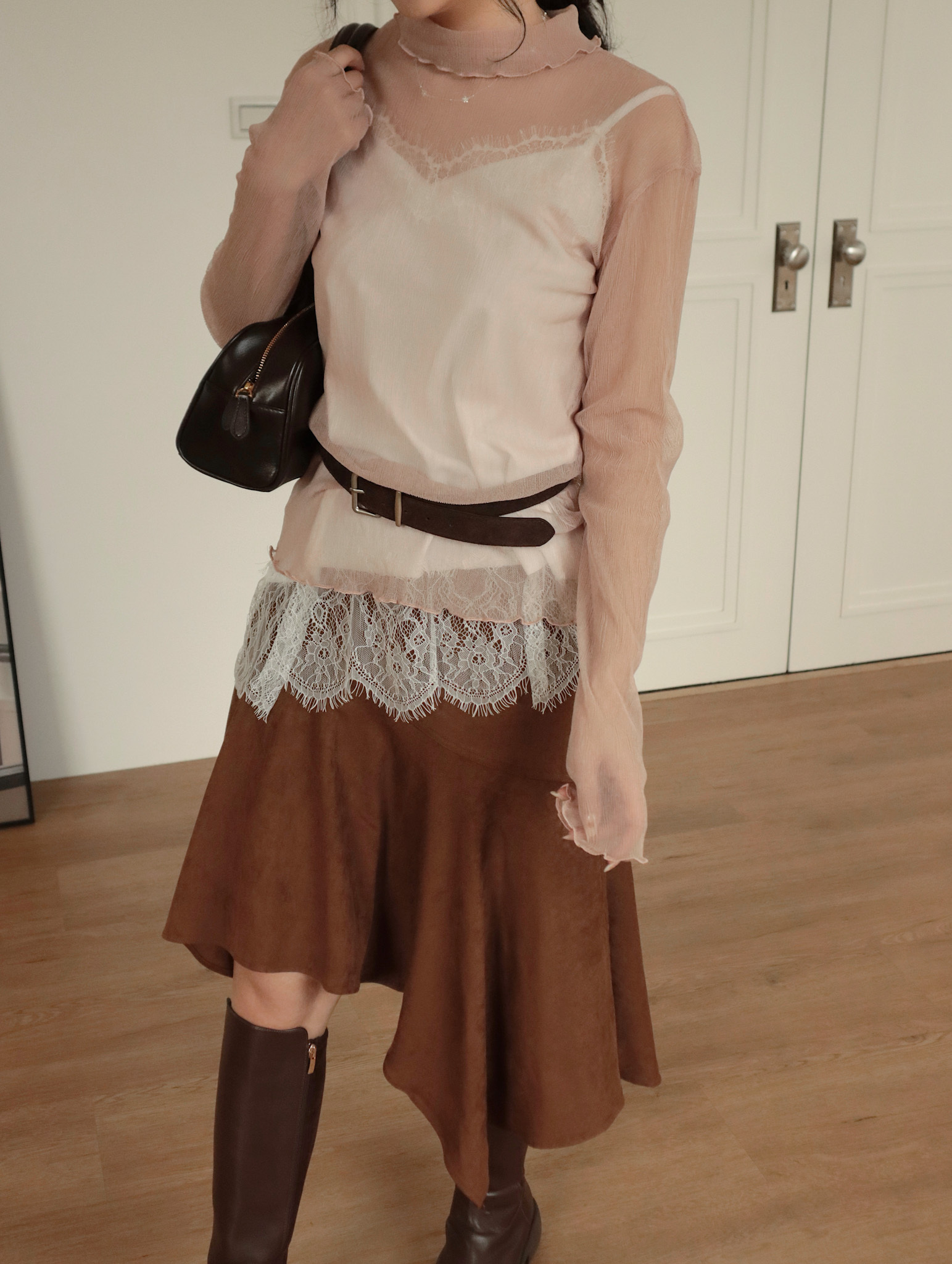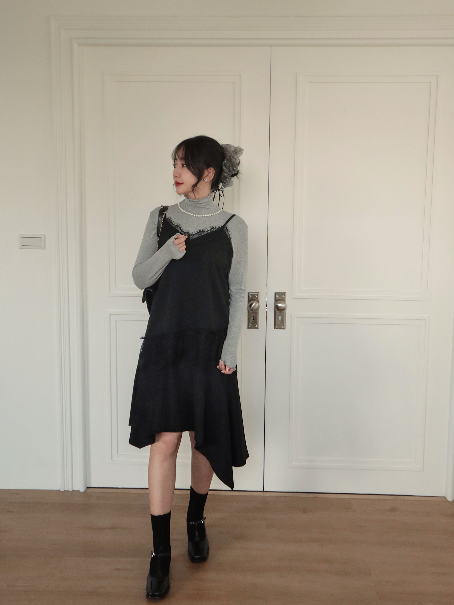 25K119 質感提升 斜襬睫毛蕾絲緞光細肩帶背心
