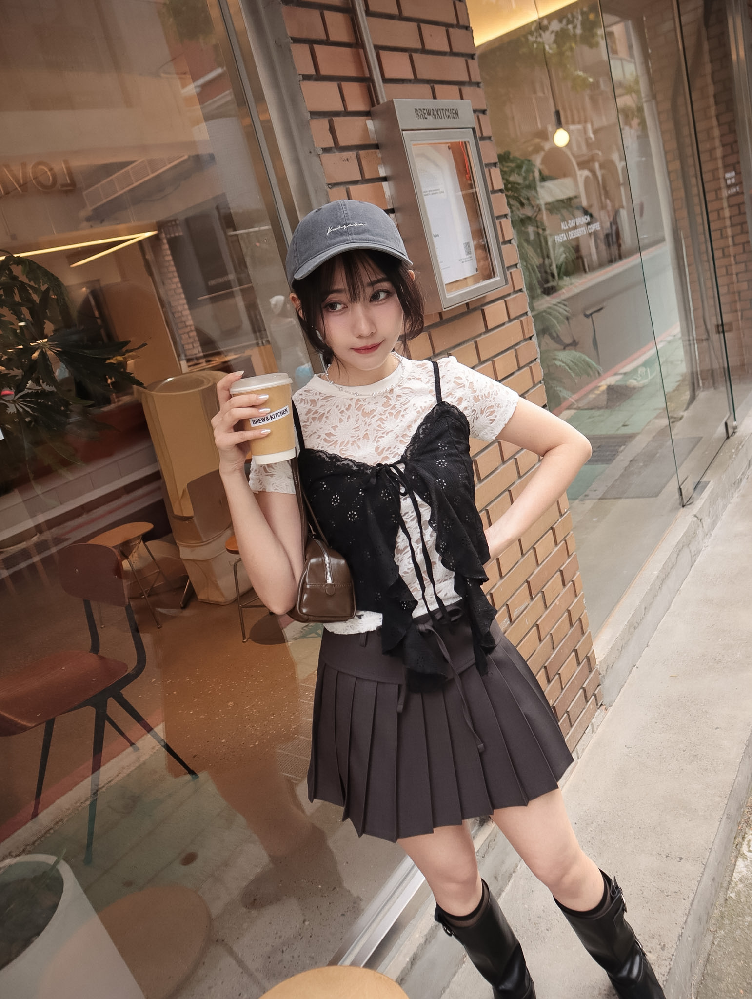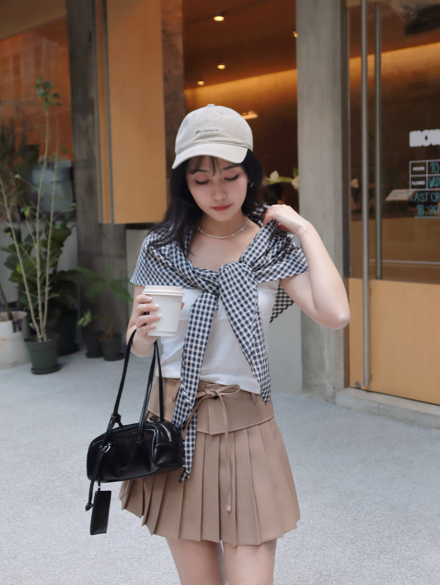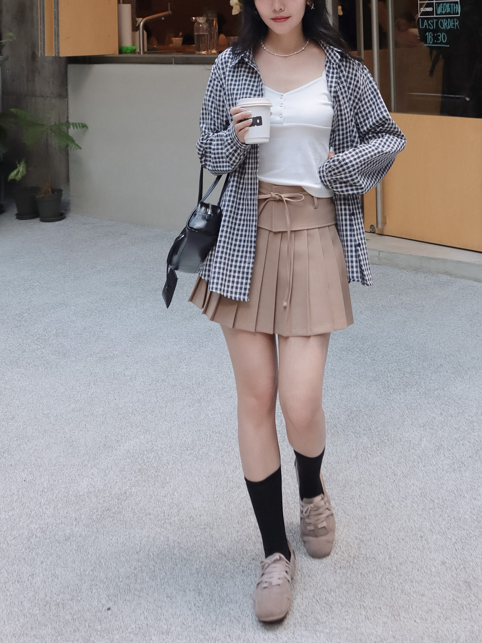 26B110 本期推薦! 回歸舞台可鹽可甜腰封拼接百褶短褲裙