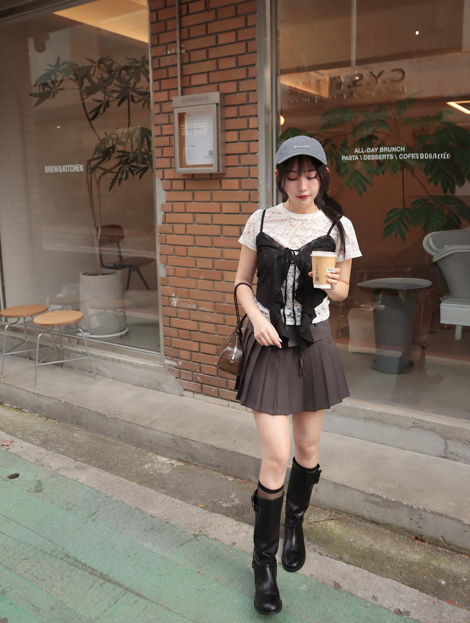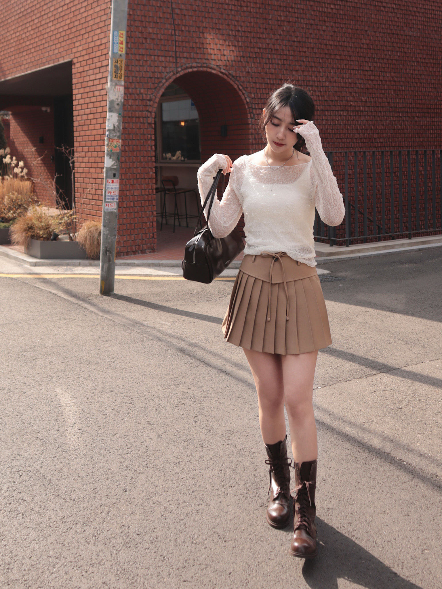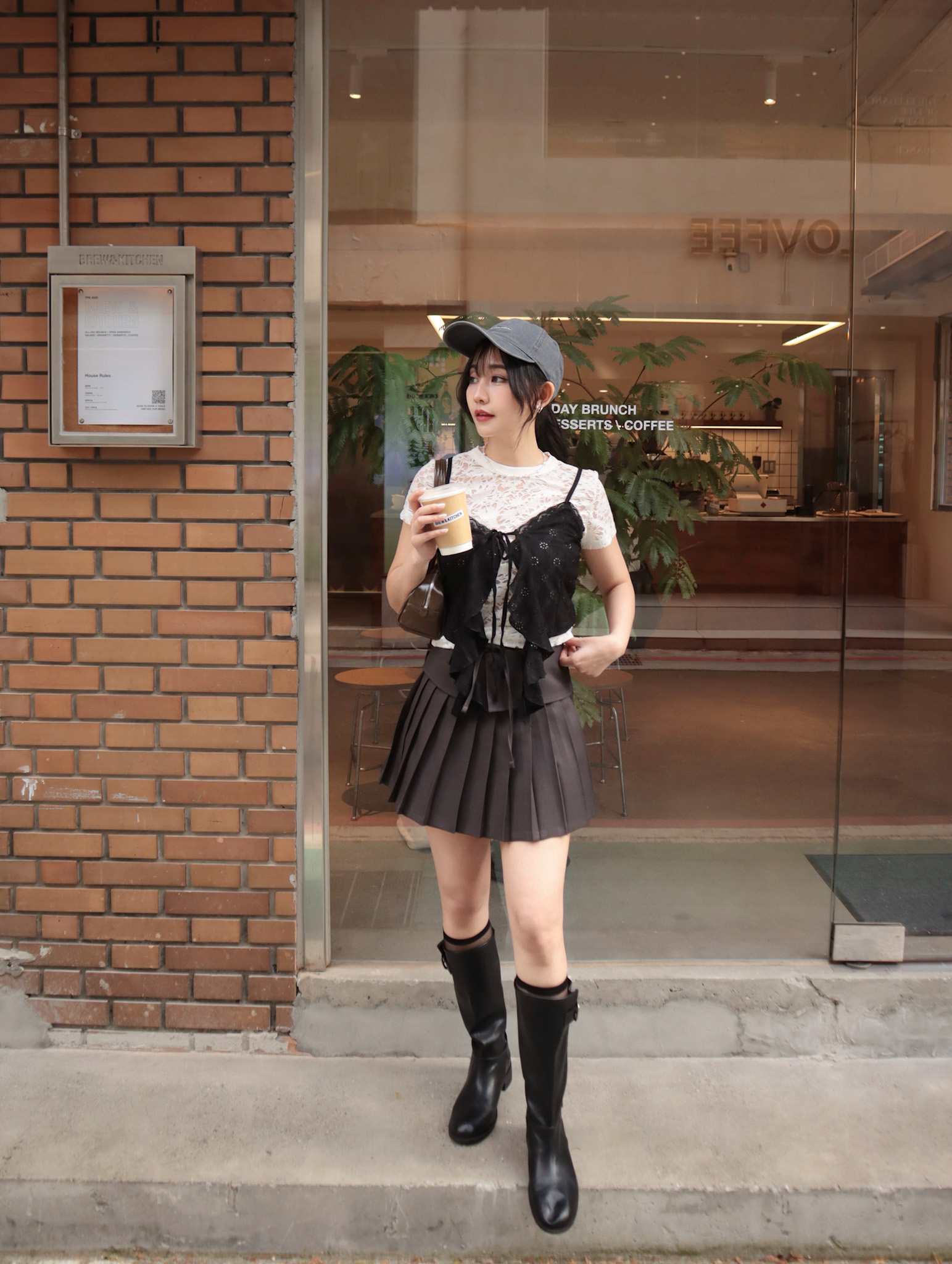 26B110 本期推薦! 回歸舞台可鹽可甜腰封拼接百褶短褲裙