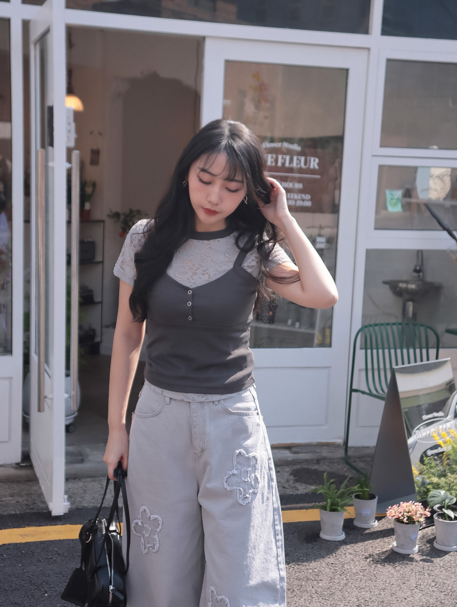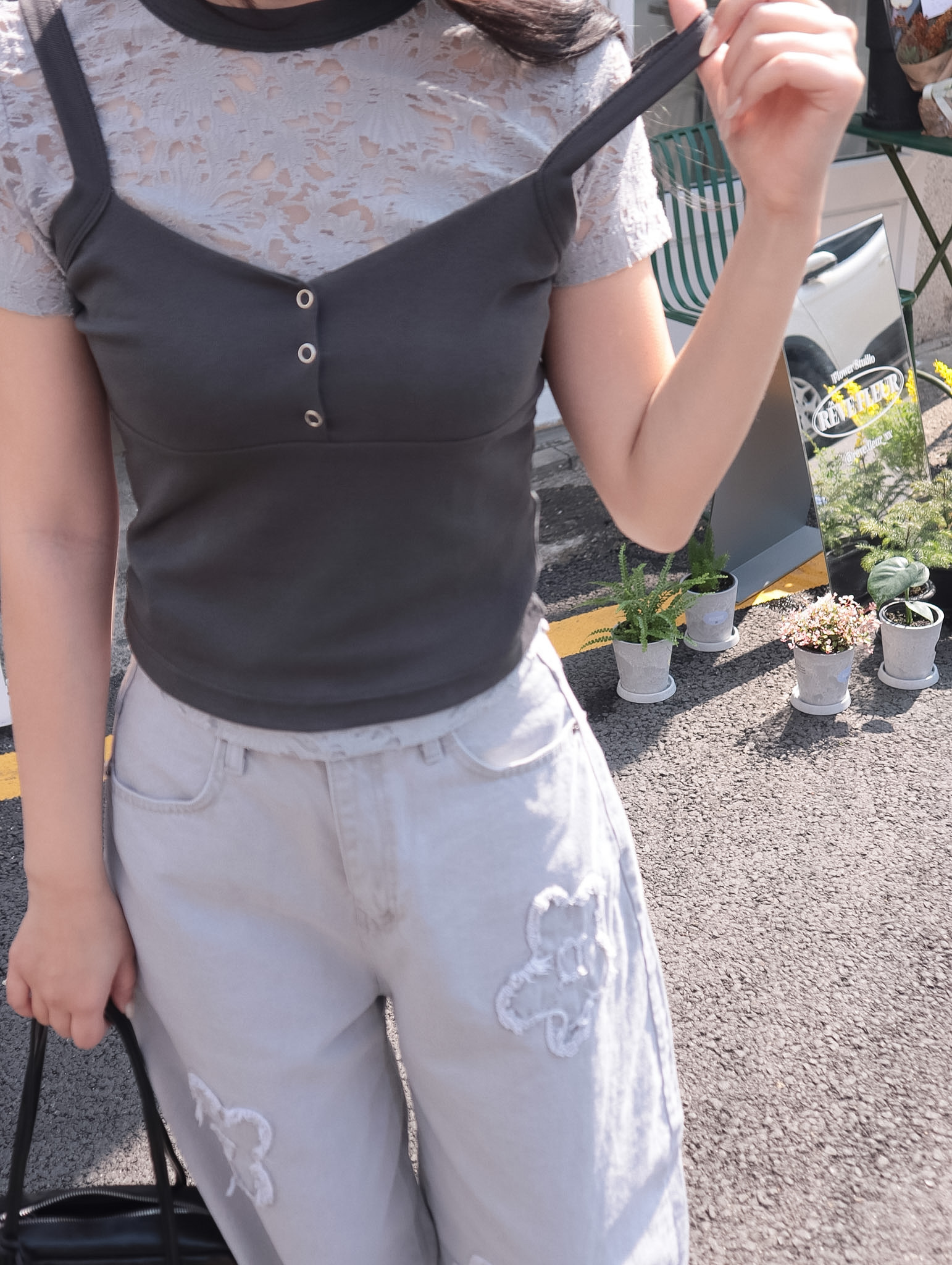 26B112 本期推薦! 一百種穿搭的可能 透膚花花短袖+神版型V領背心Set