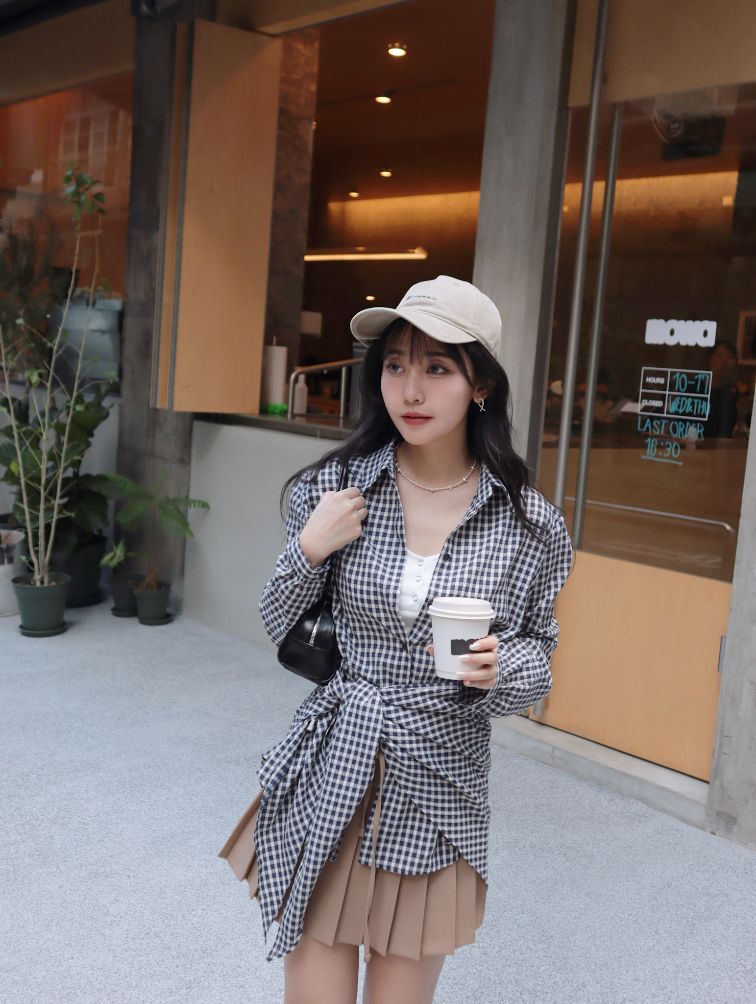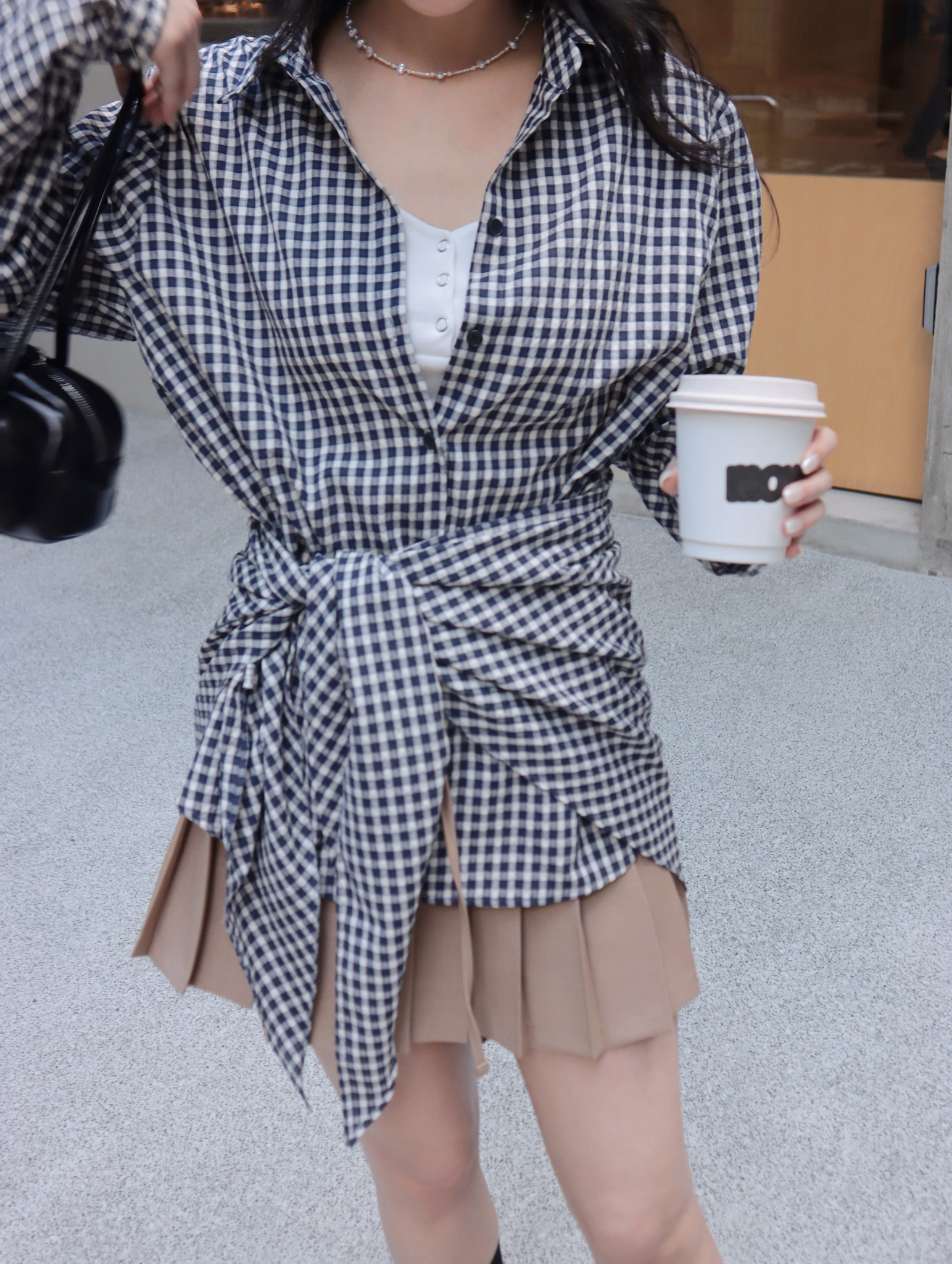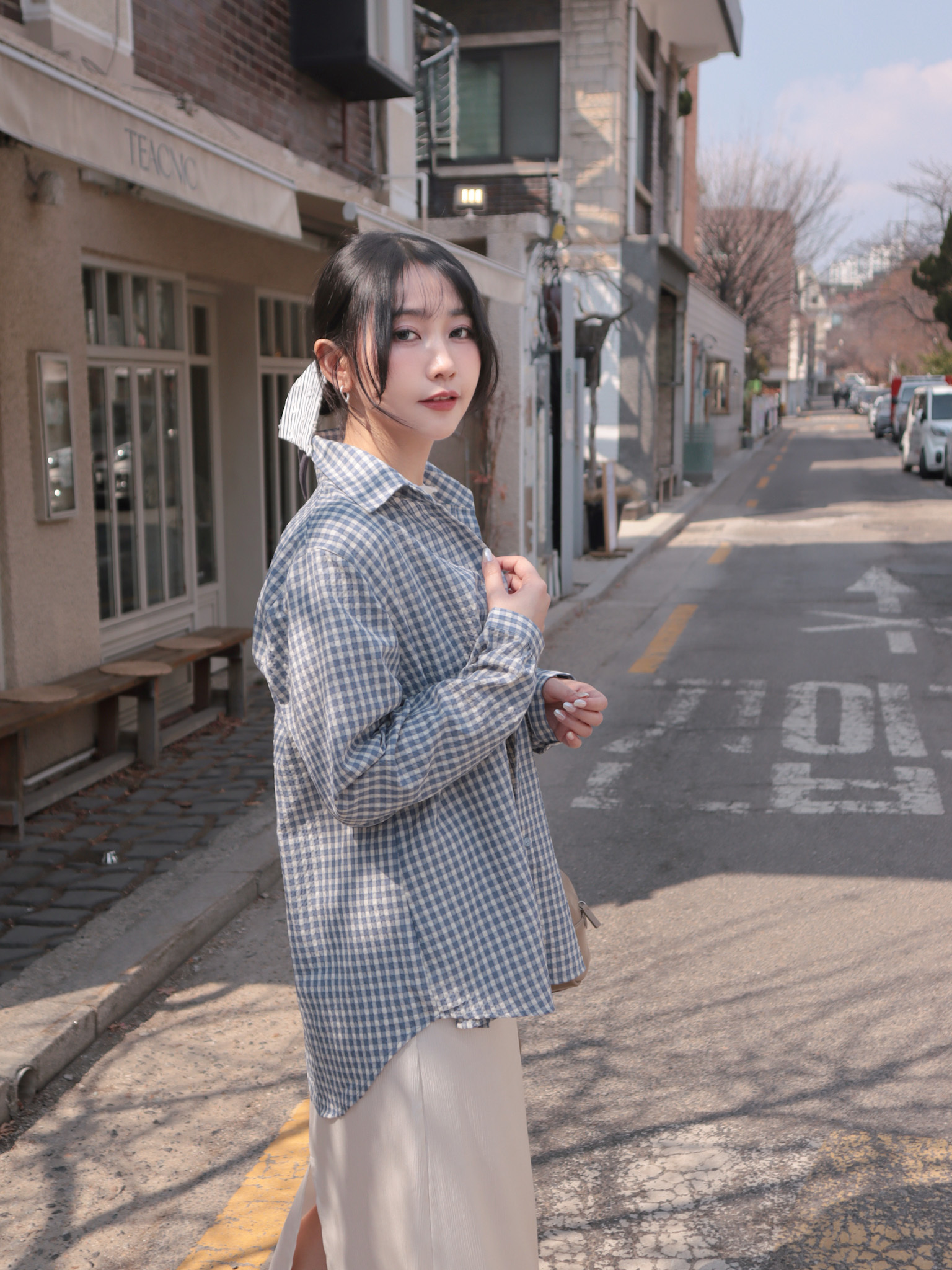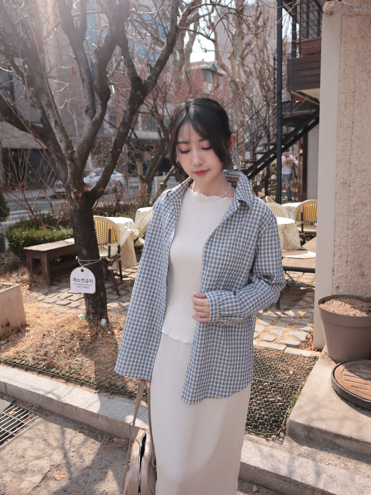 26B114 Monday to Sun 質感日常版型極佳的格紋襯衫+三角巾Set (韓國布料) 自留大推款