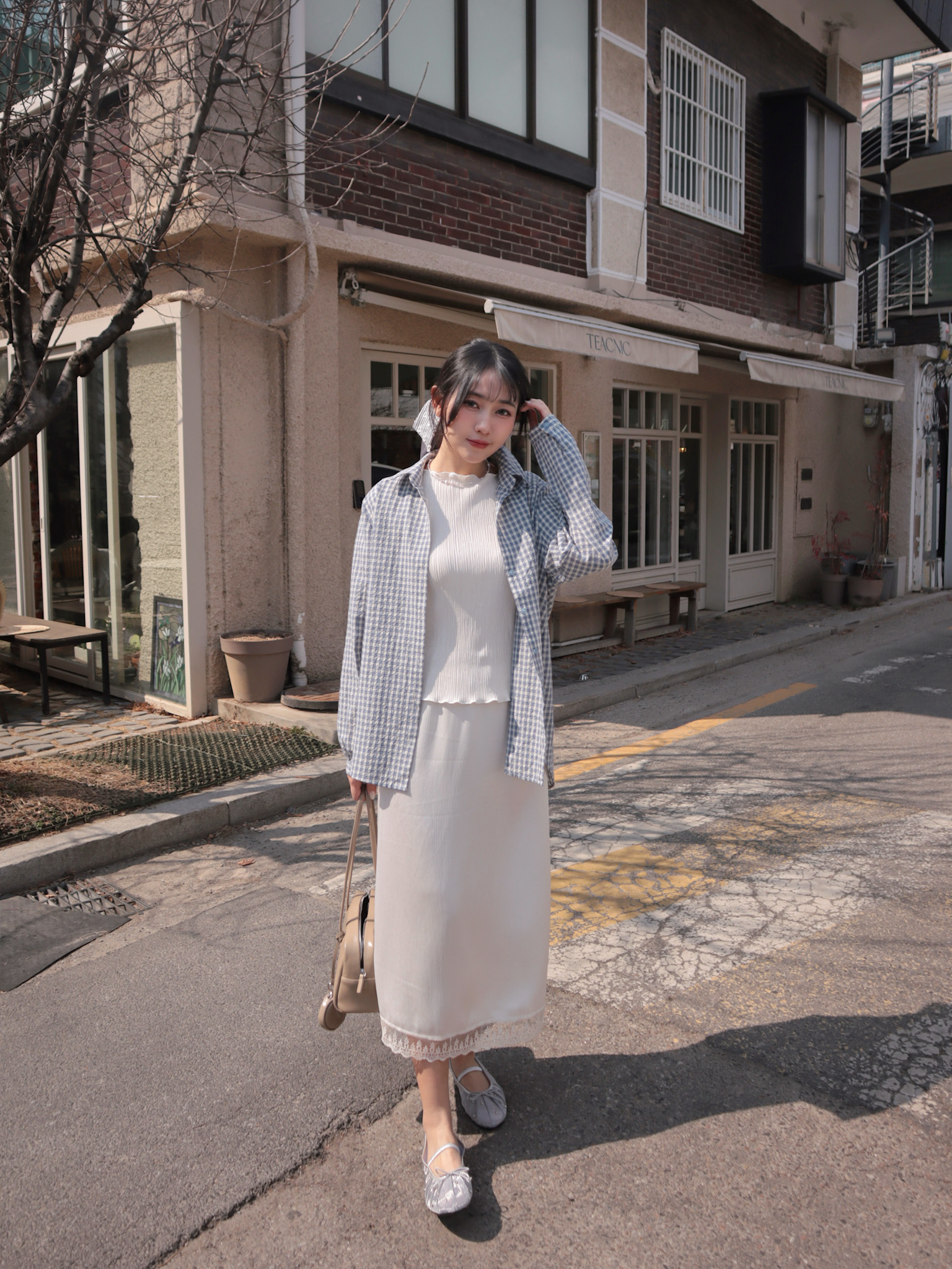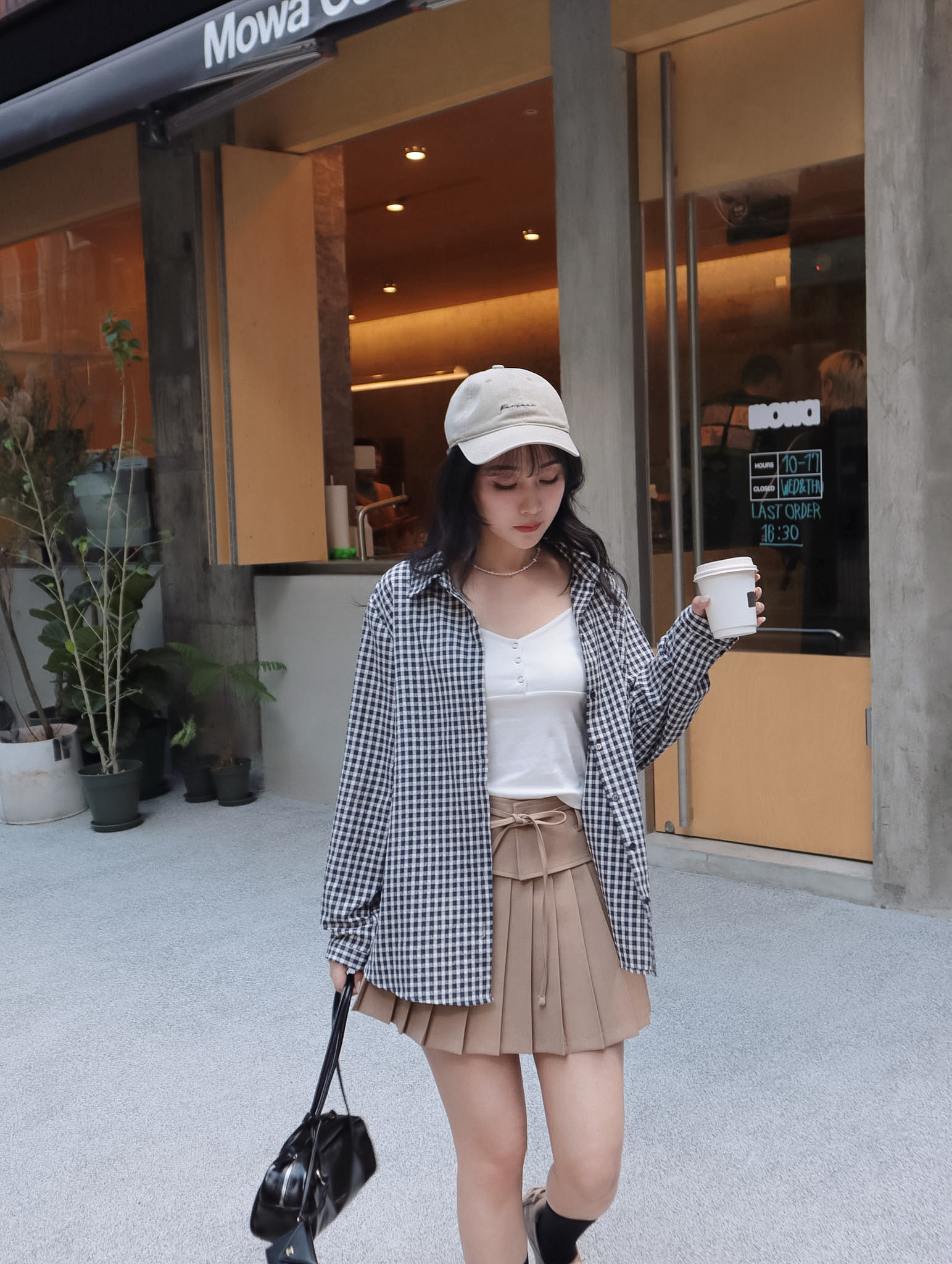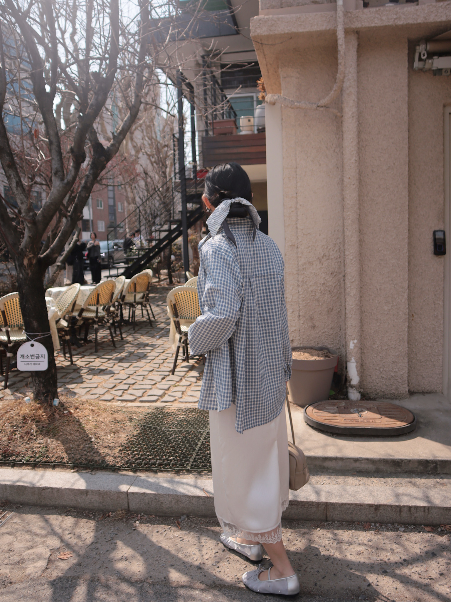 26B114 Monday to Sun 質感日常版型極佳的格紋襯衫+三角巾Set (韓國布料) 自留大推款