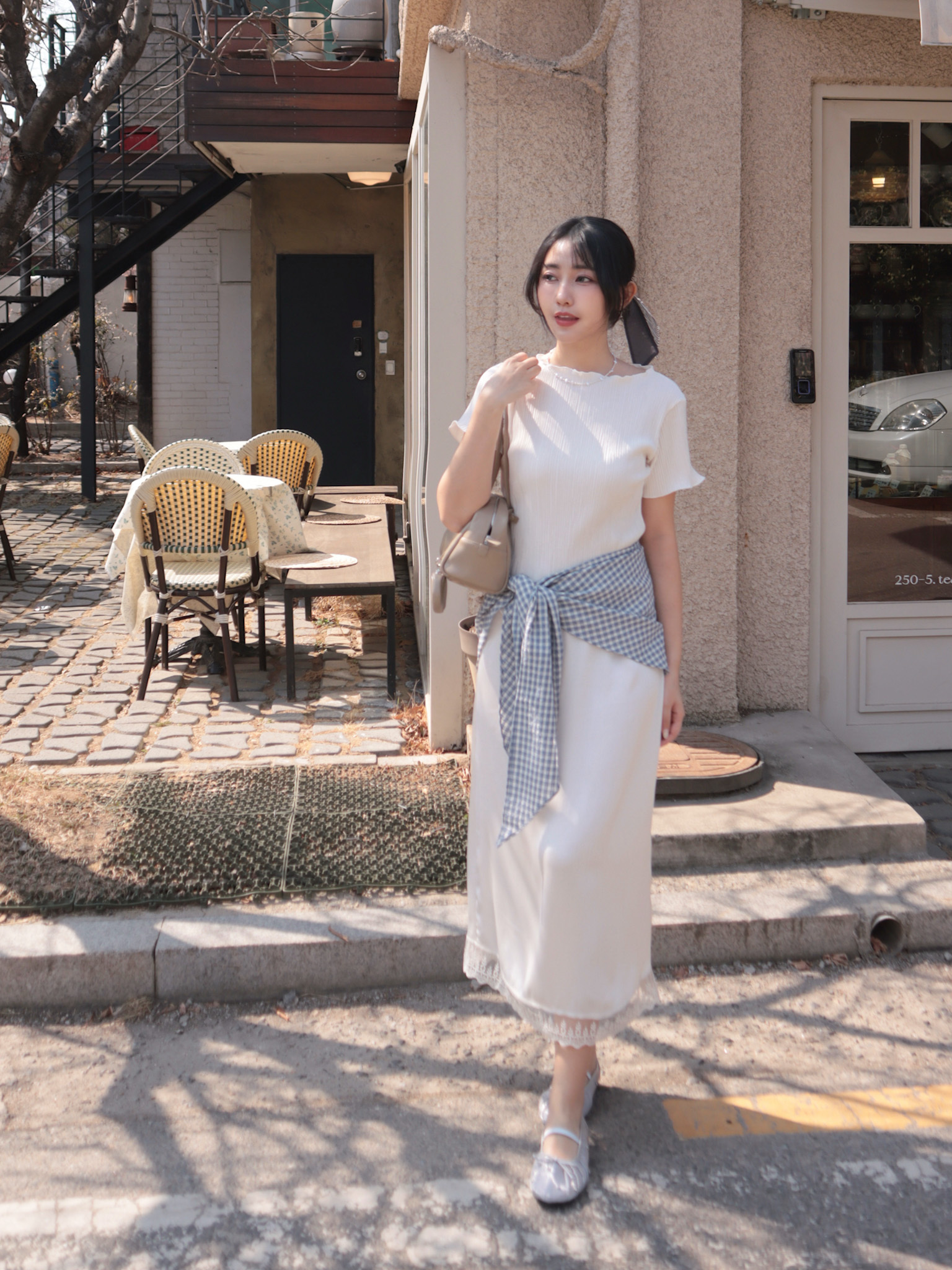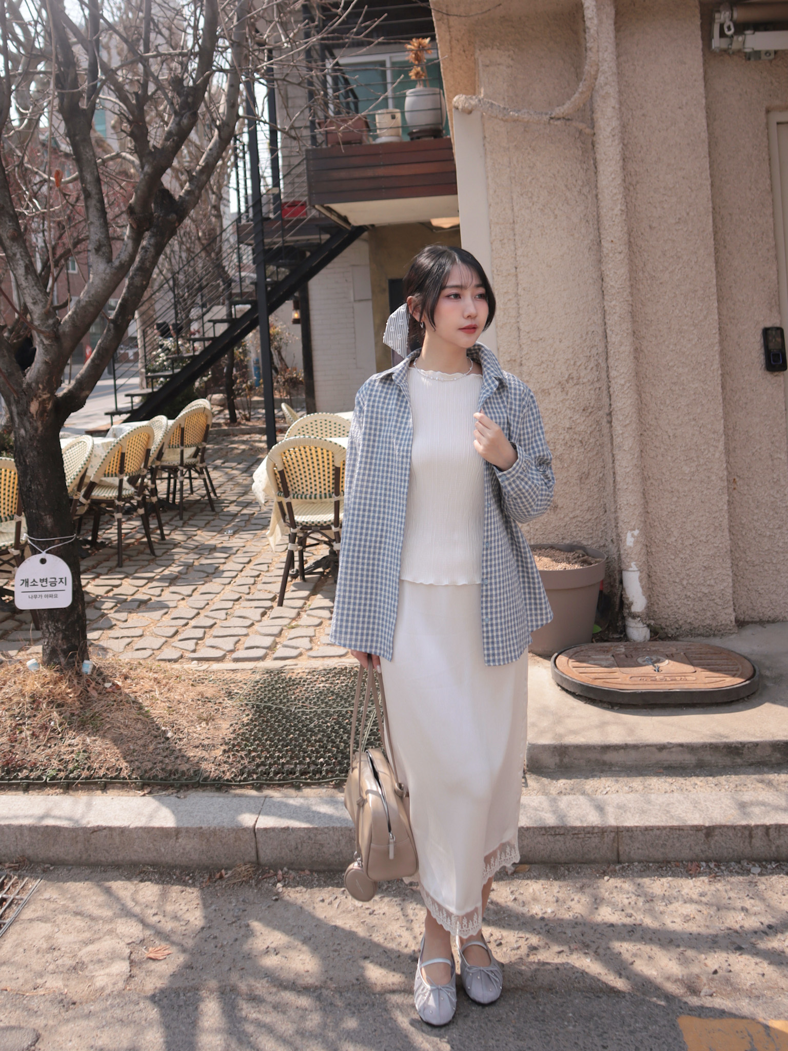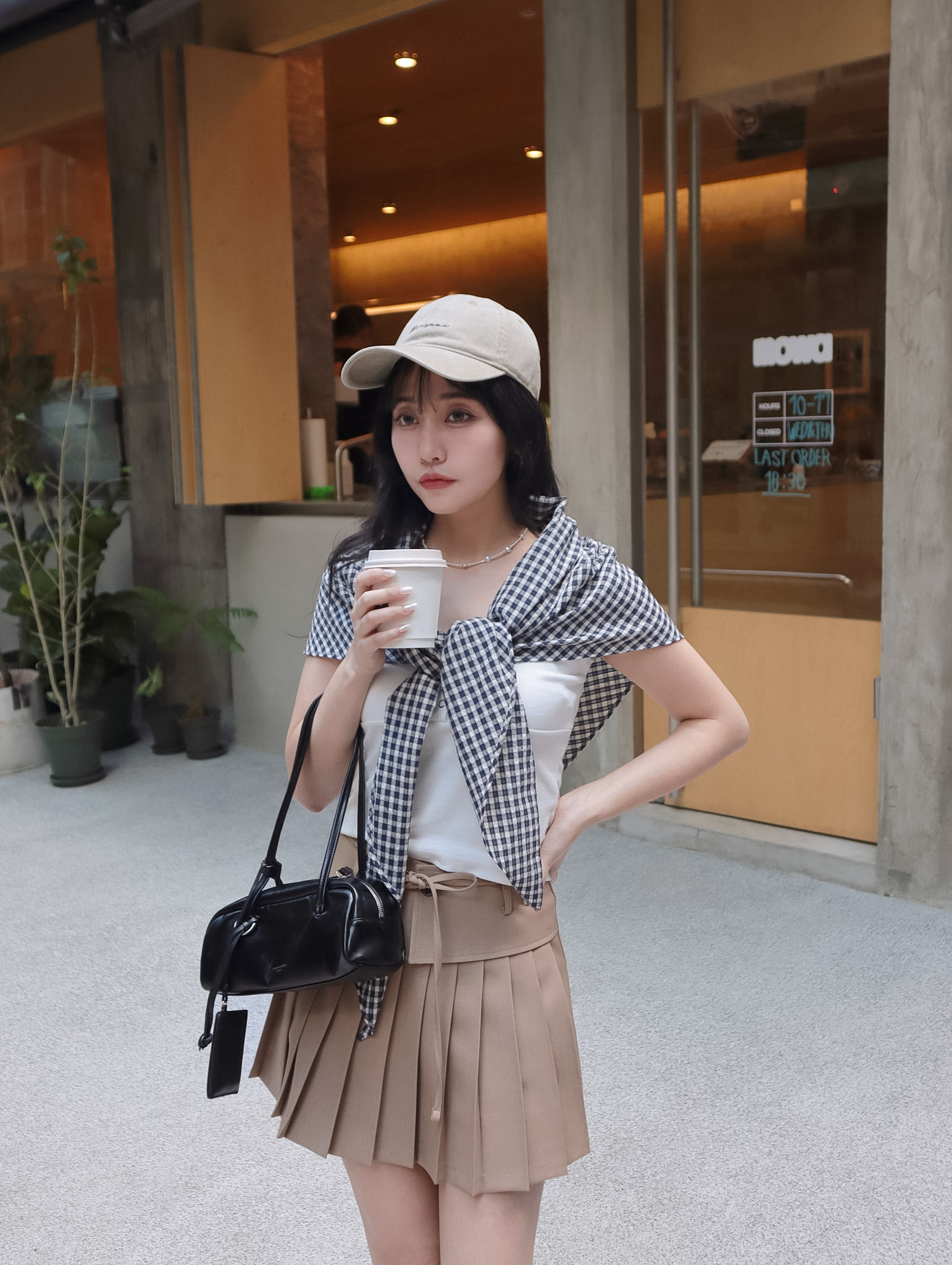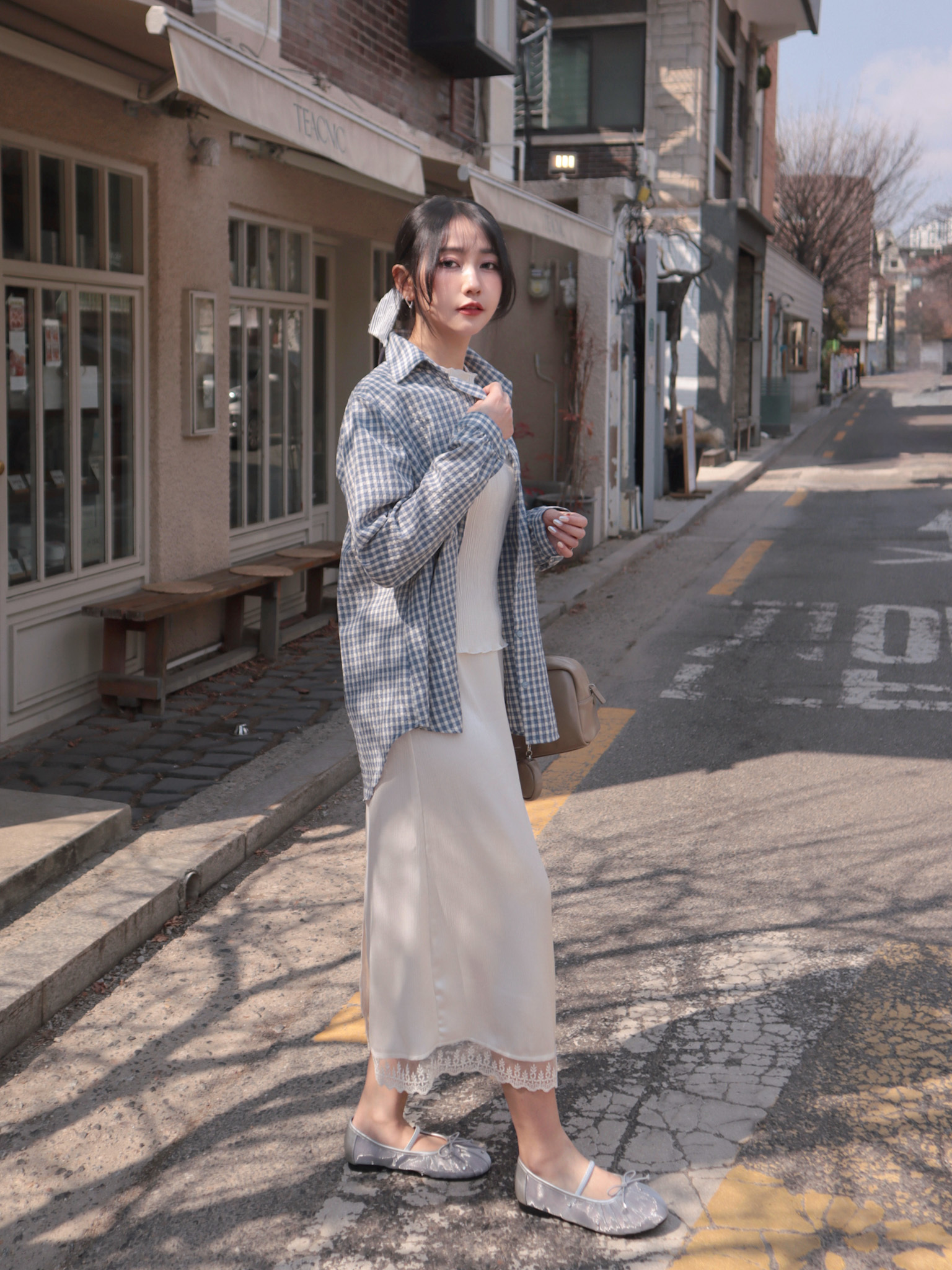 26B114 Monday to Sun 質感日常版型極佳的格紋襯衫+三角巾Set (韓國布料) 自留大推款
