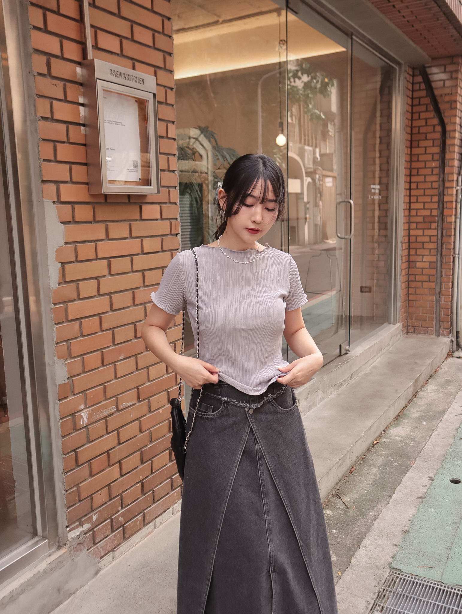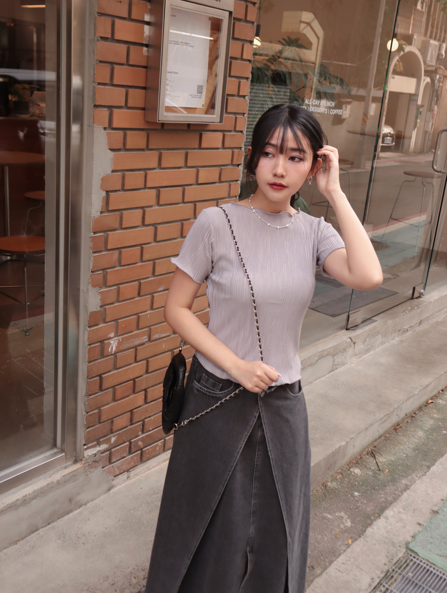 26B118 必須稱為每日Tee 超好搭的細坑條皺皺彈性上衣(不易皺可機洗)