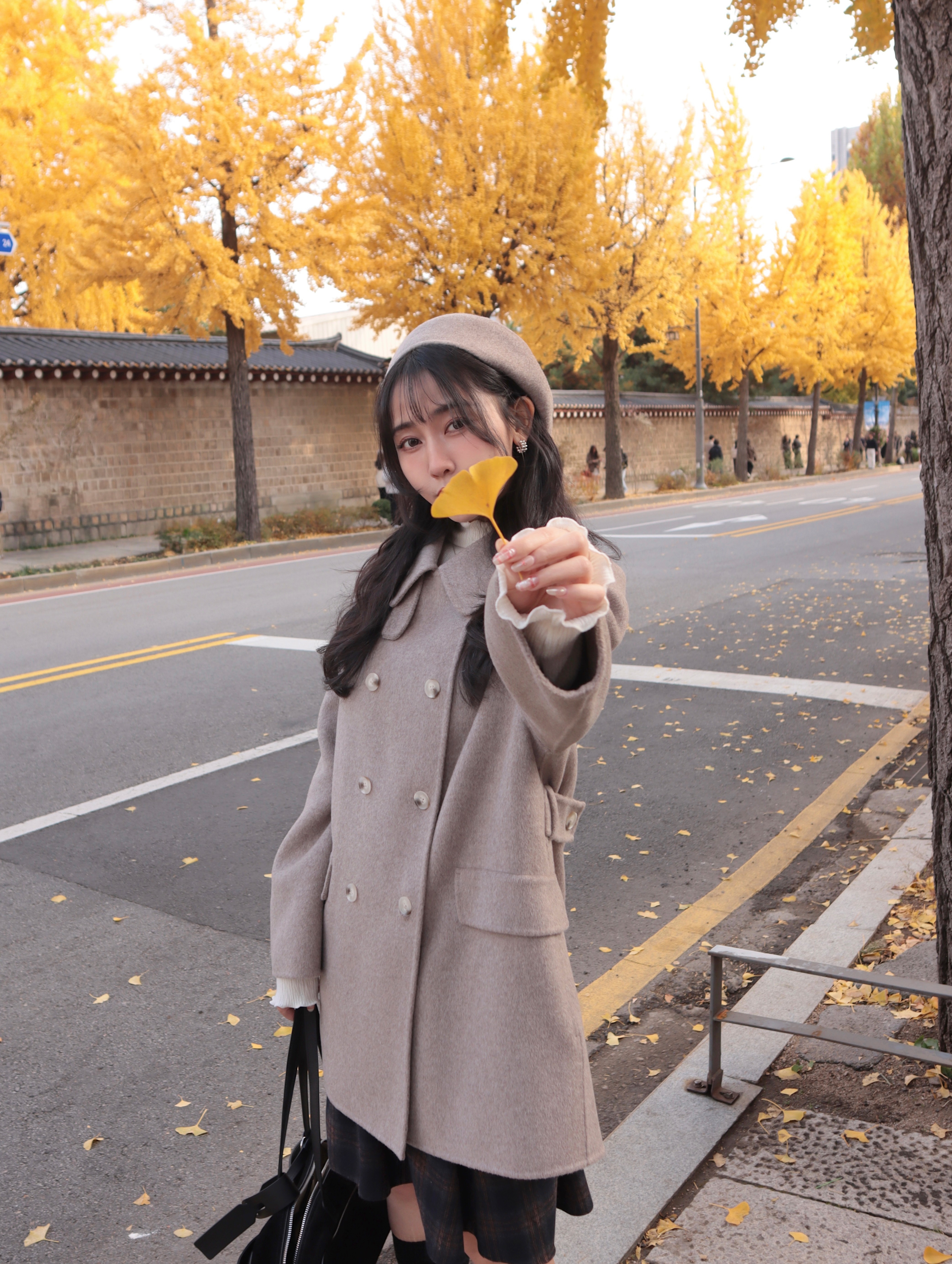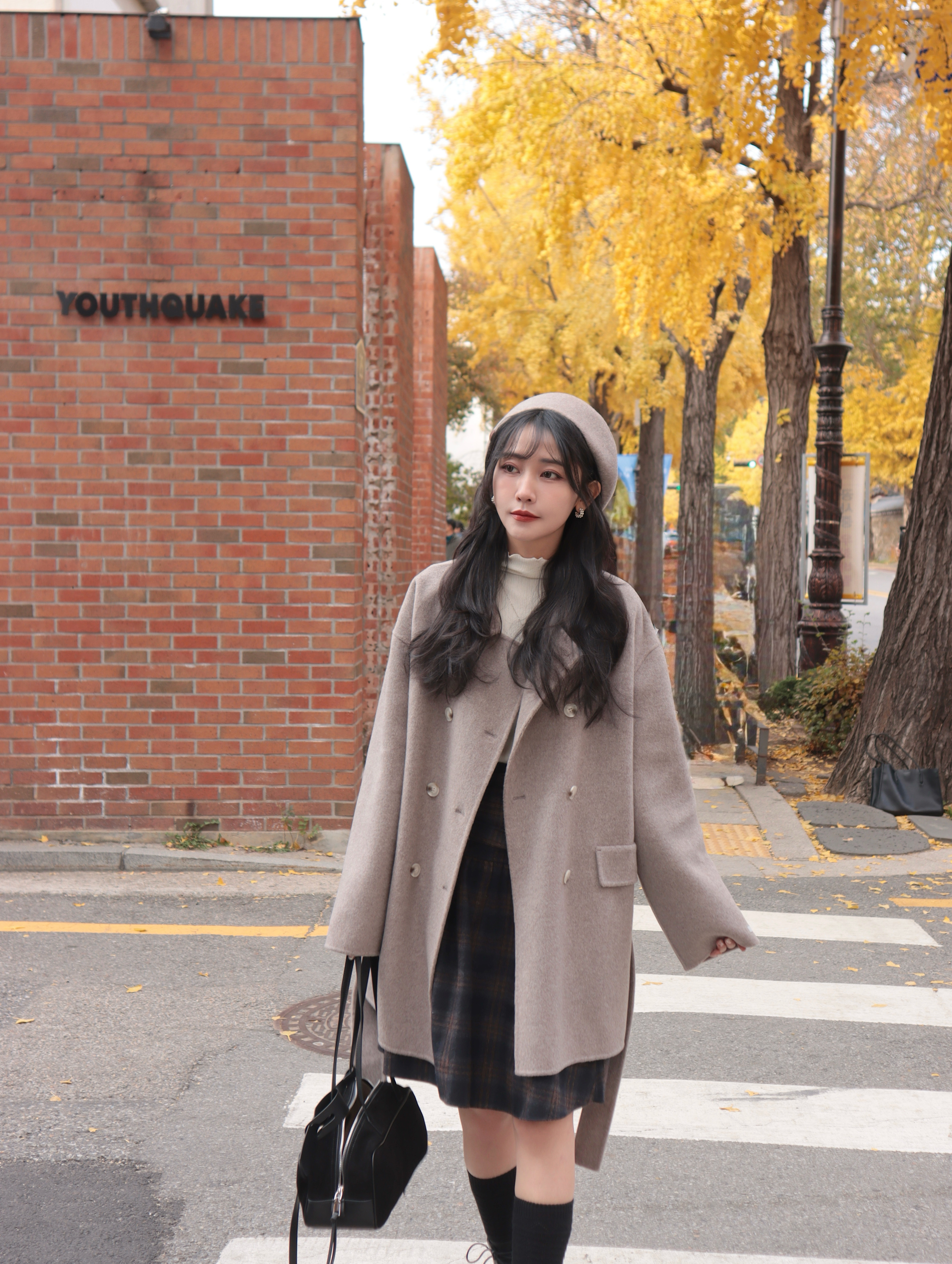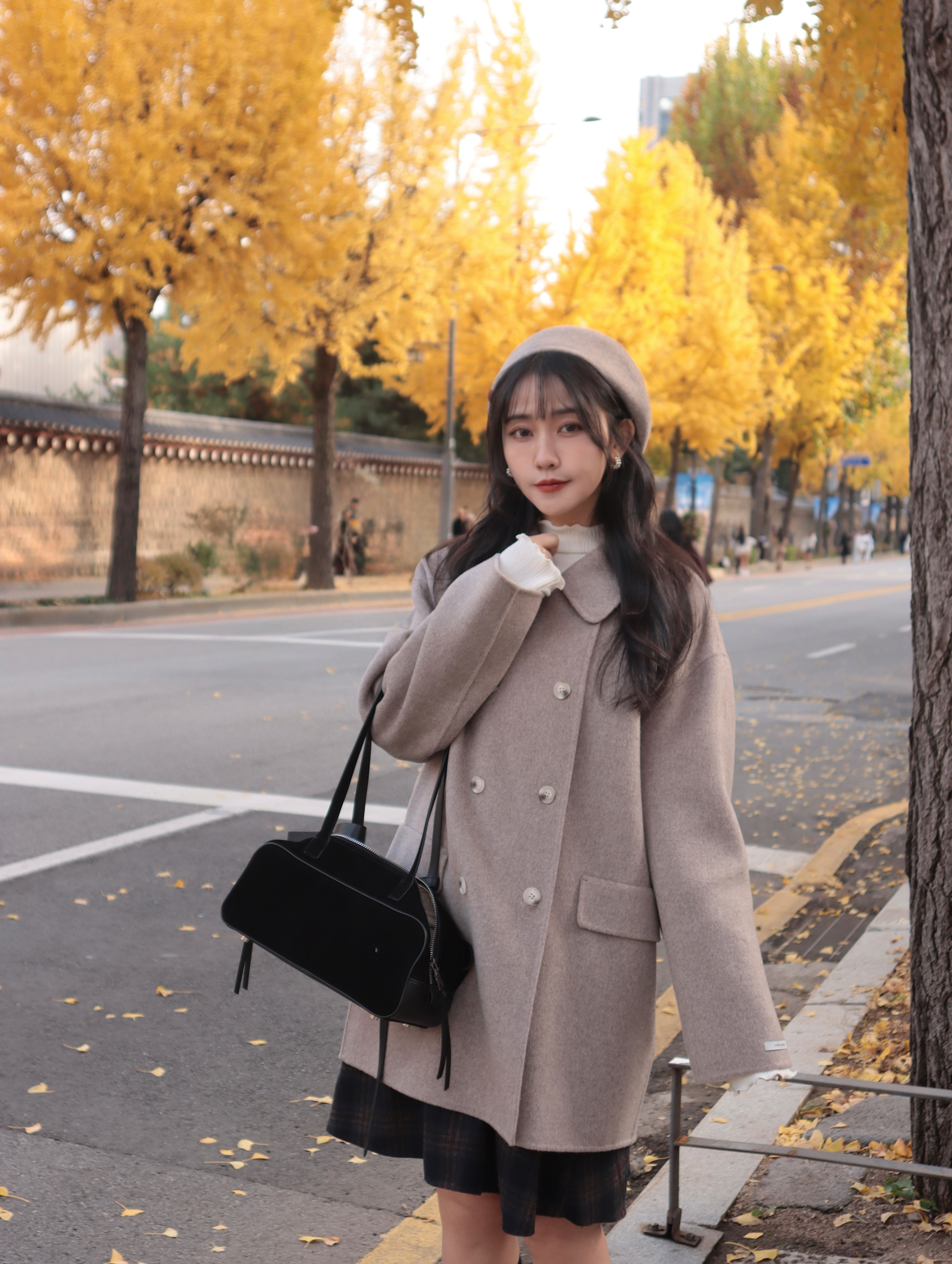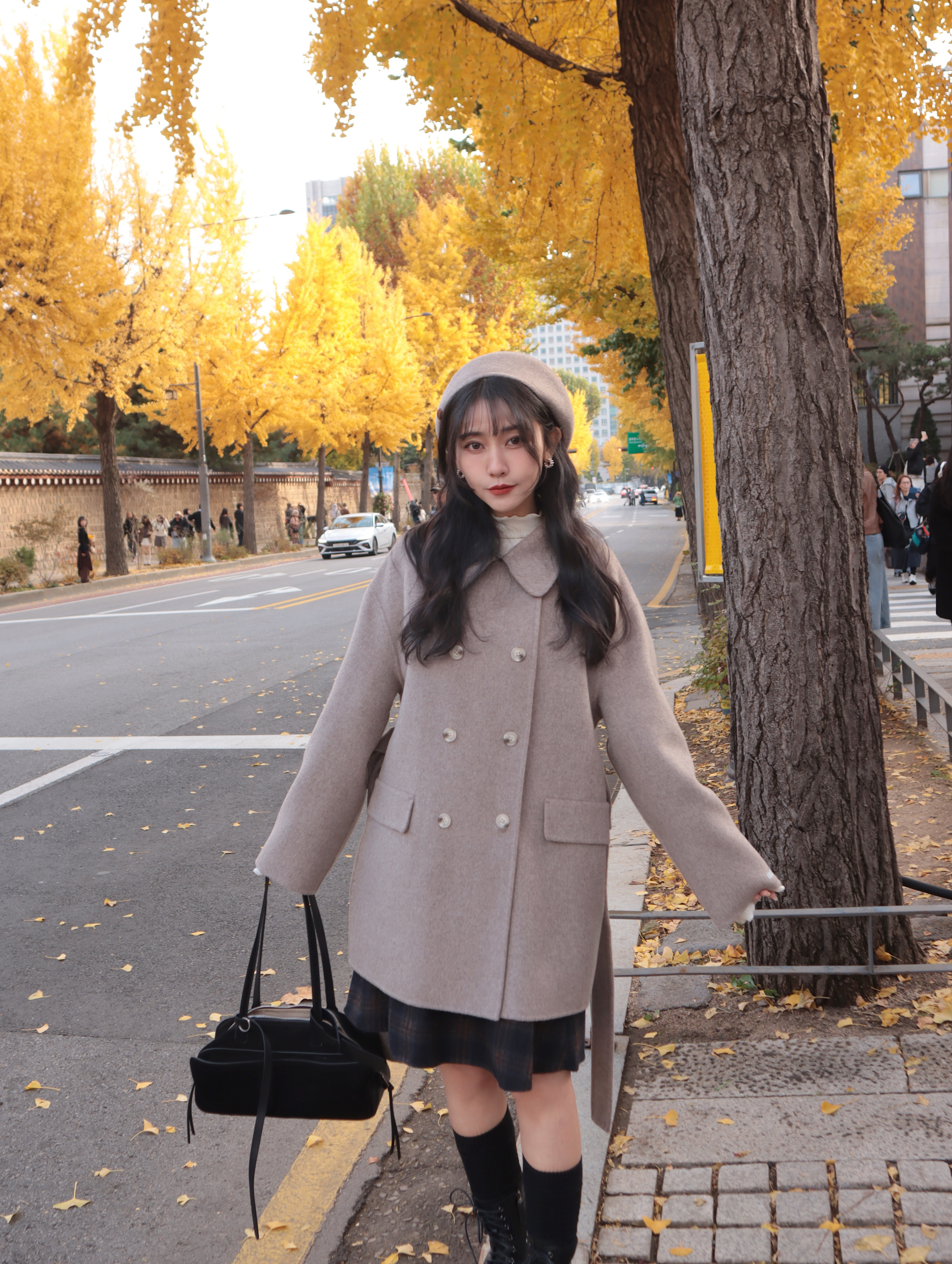CG10-G【Premium】法式康朋 品牌自訂經典雙排釦100%羊毛手工大衣 /可可奶灰