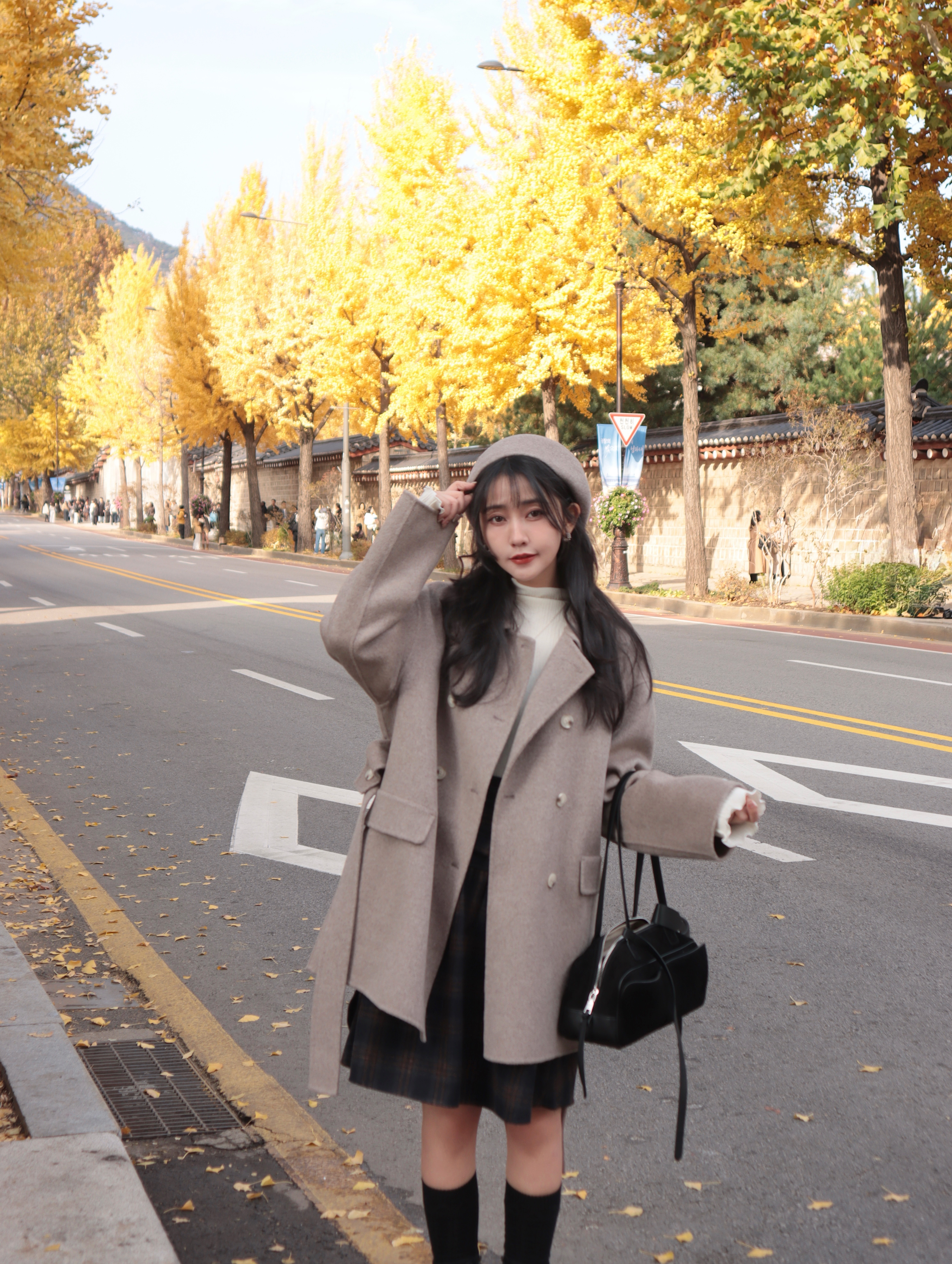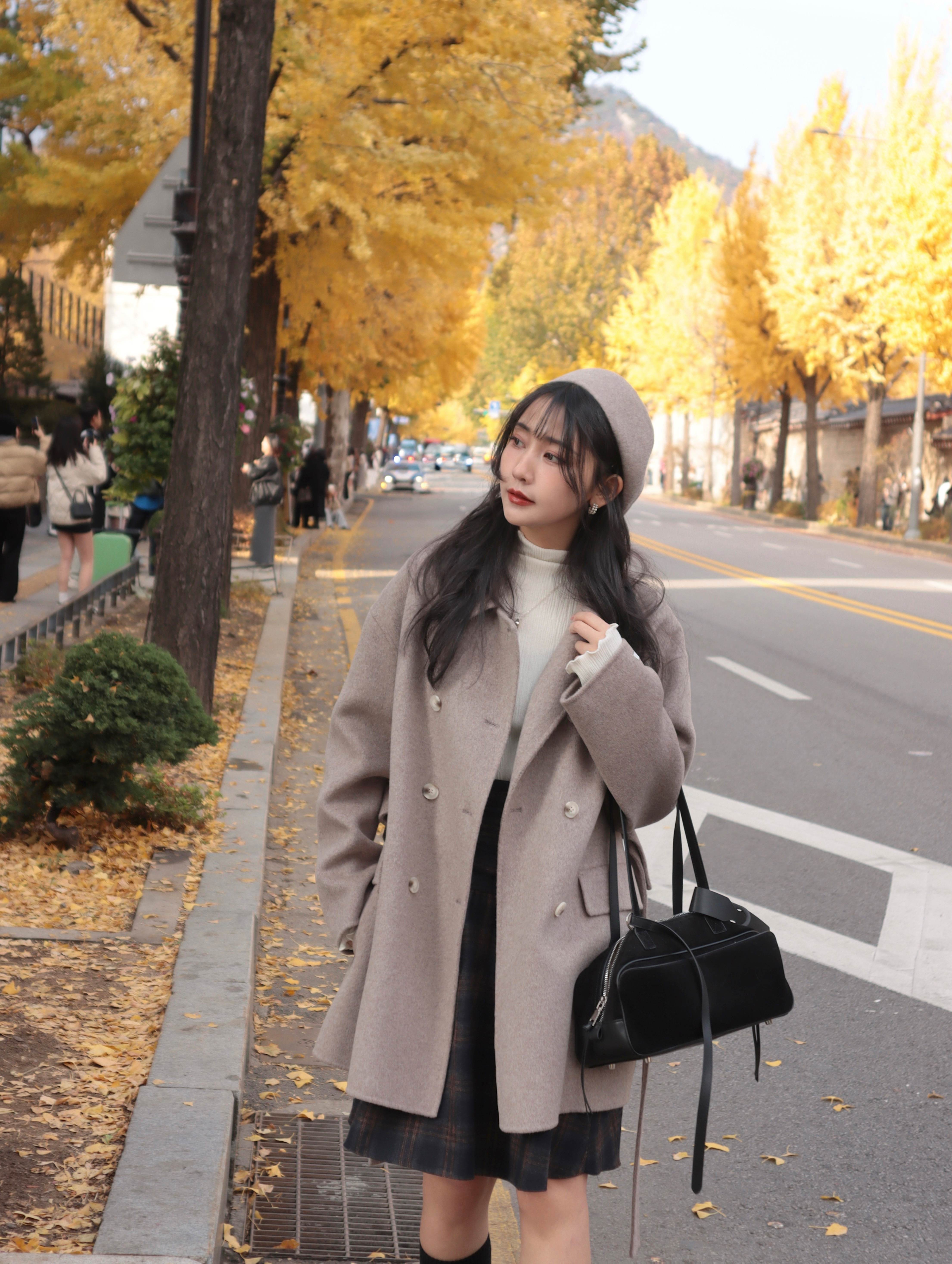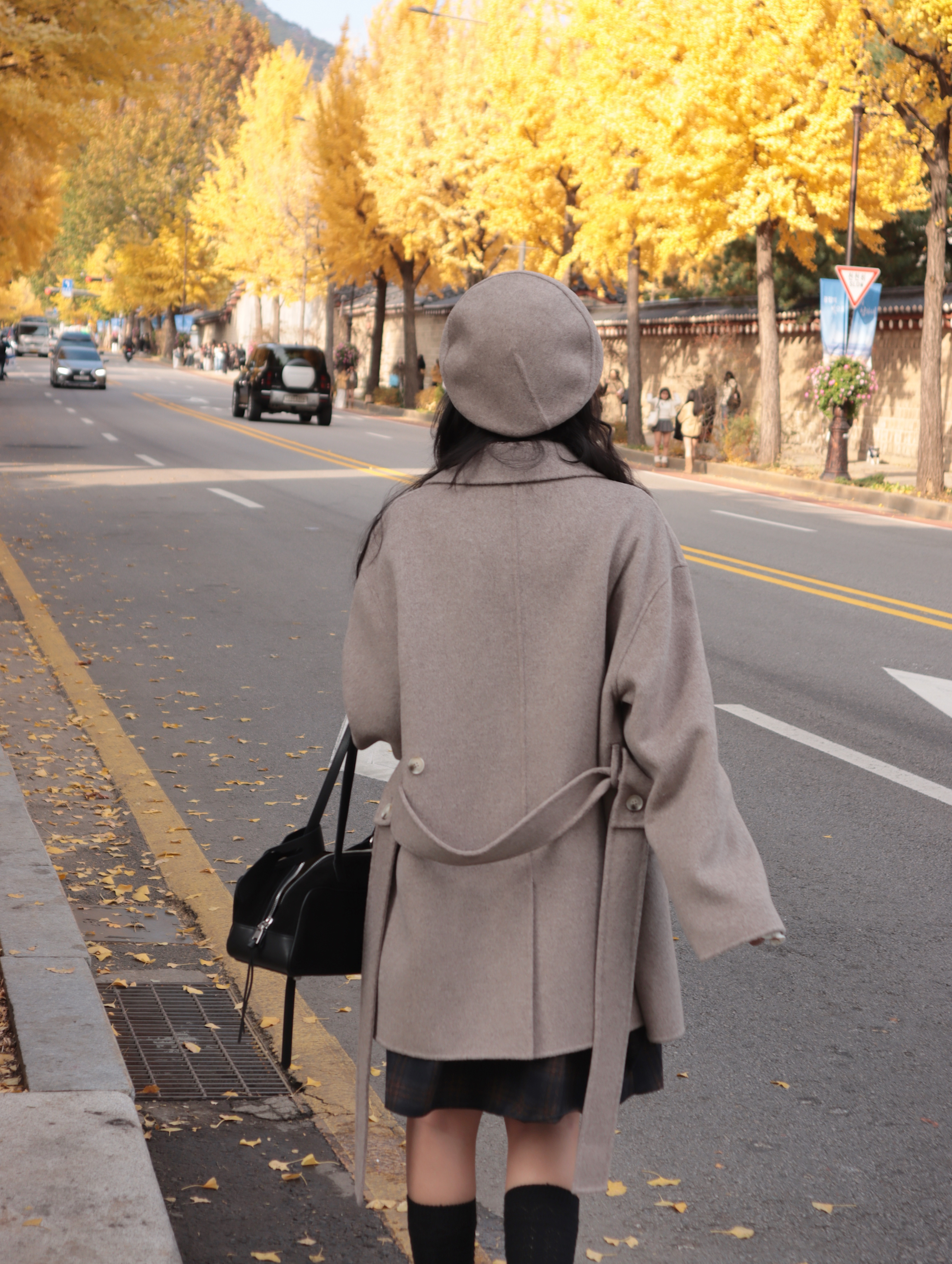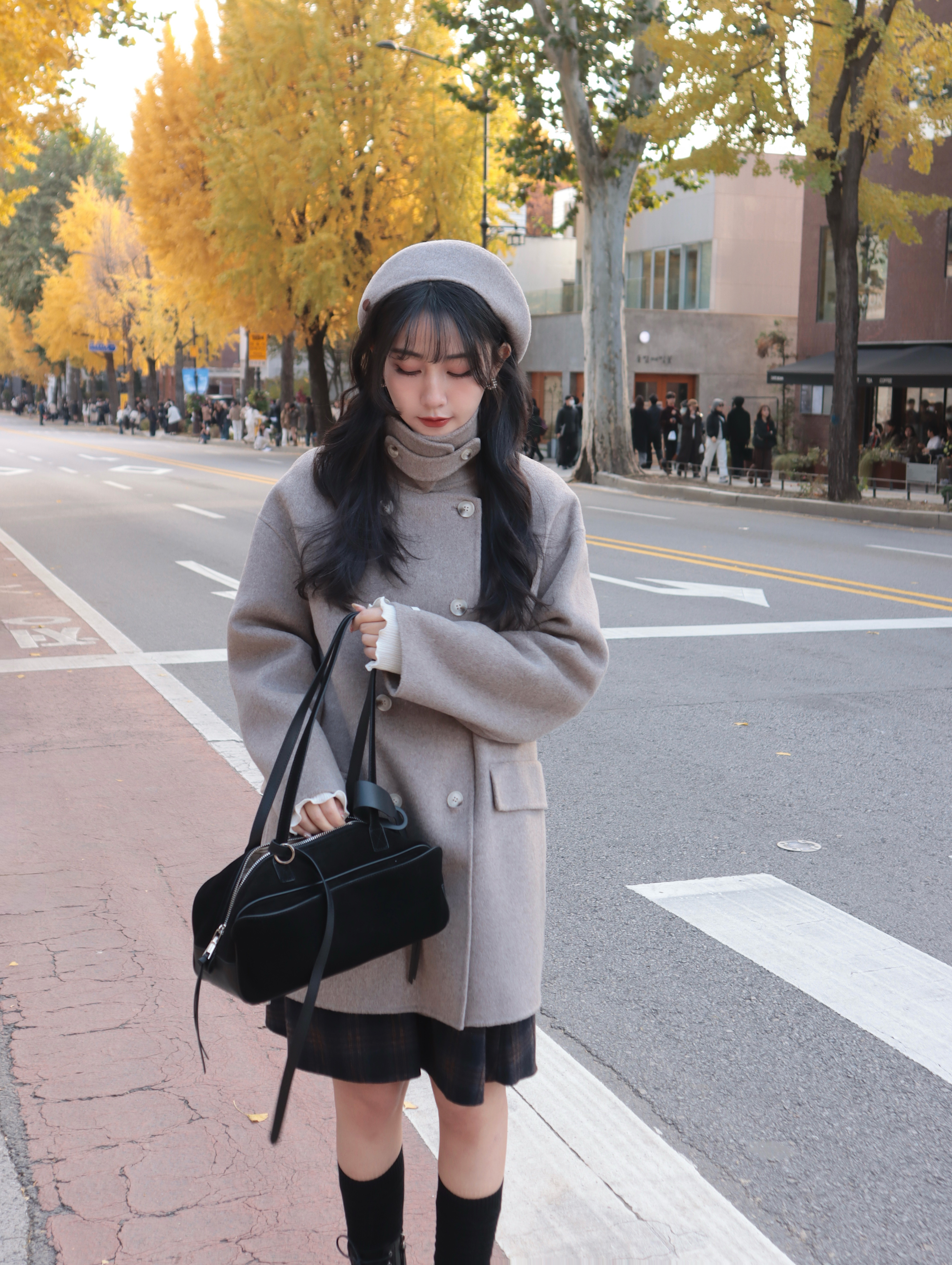 CG10-G【Premium】法式康朋 品牌自訂經典雙排釦100%羊毛手工大衣 /可可奶灰